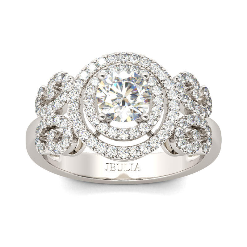 Jeulia Butterfly Design Double Halo Round Cut Sterling Silver Ring