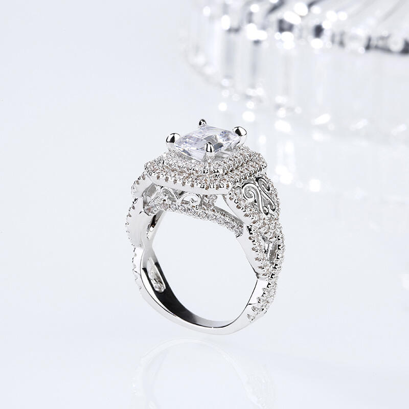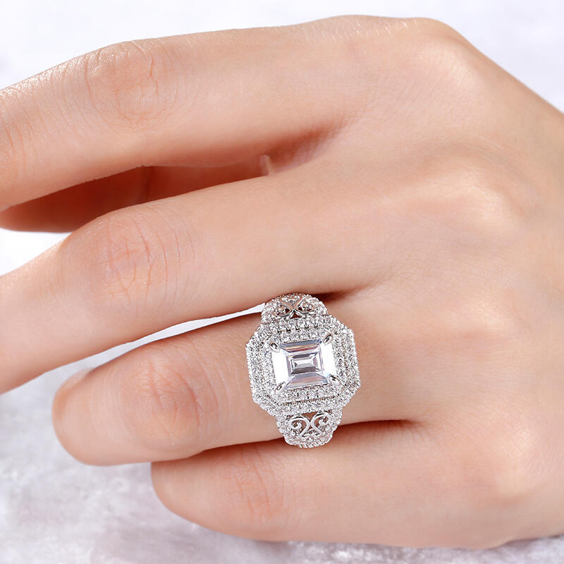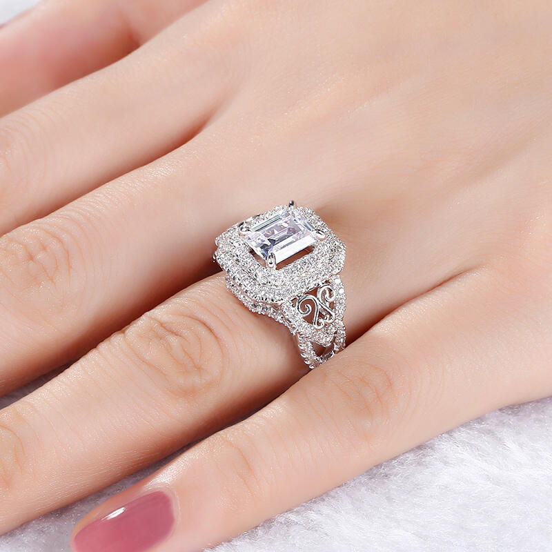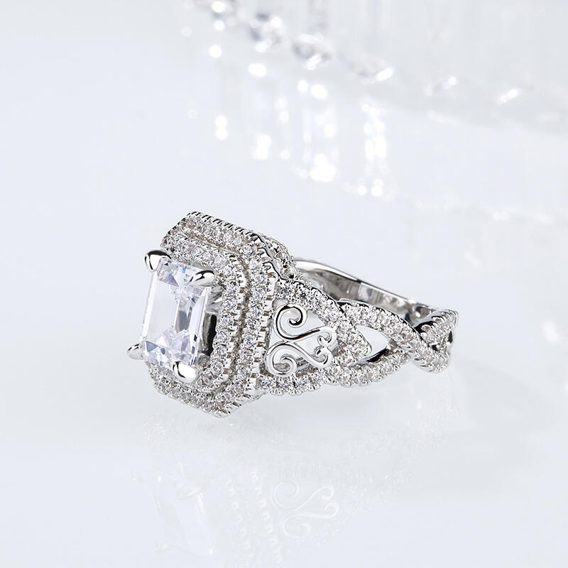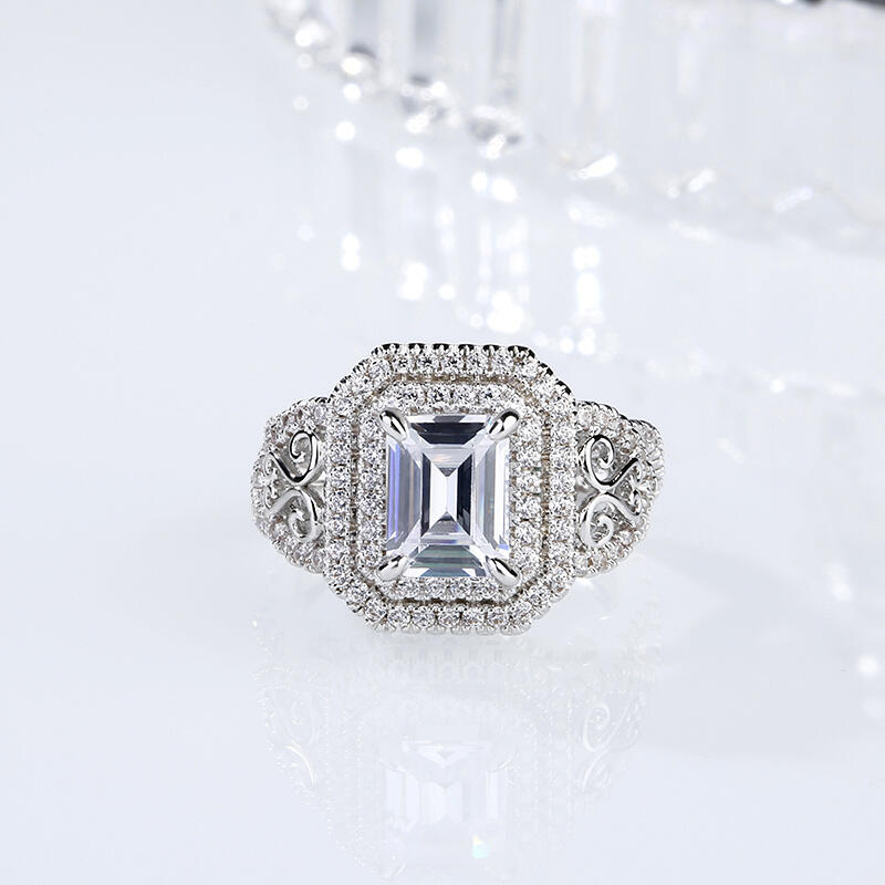 Jeulia Double Halo Emerald Cut Sterling Silver Ring