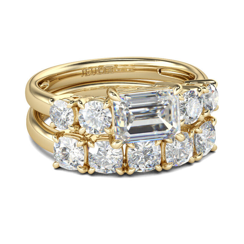 Jeulia Emerald Cut Sterling Silver Ring Set