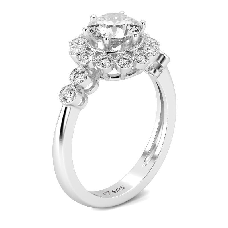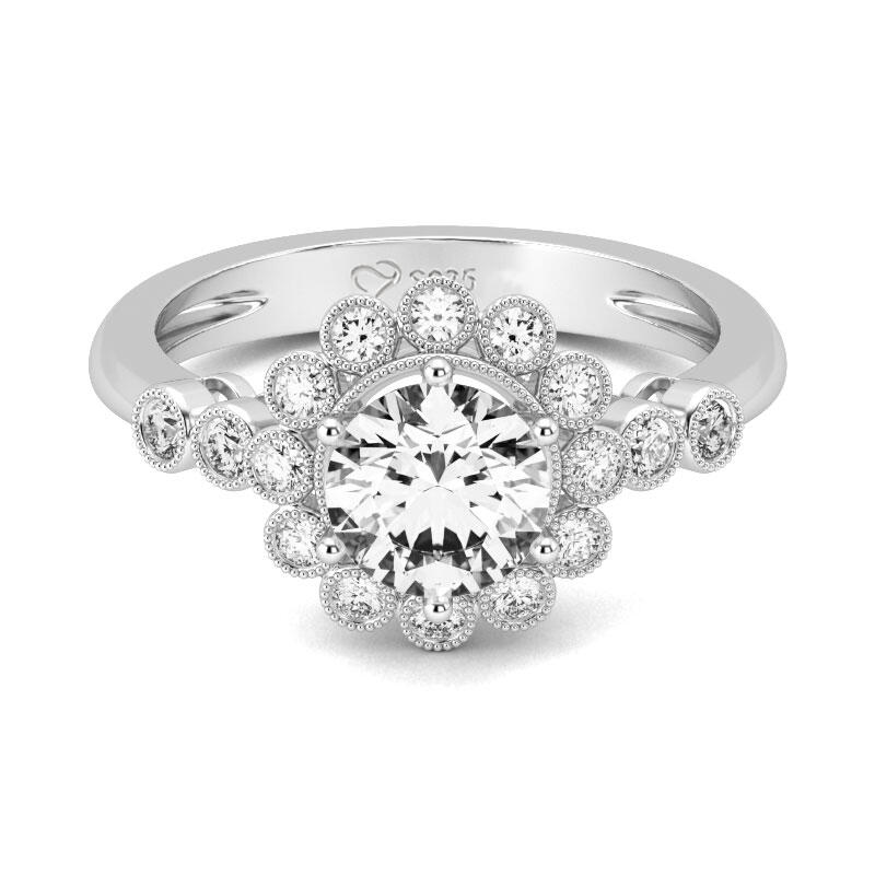 Jeulia Floral Round Cut Sterling Silver Ring
