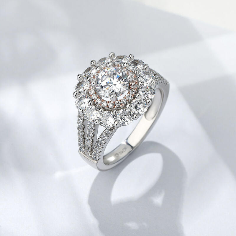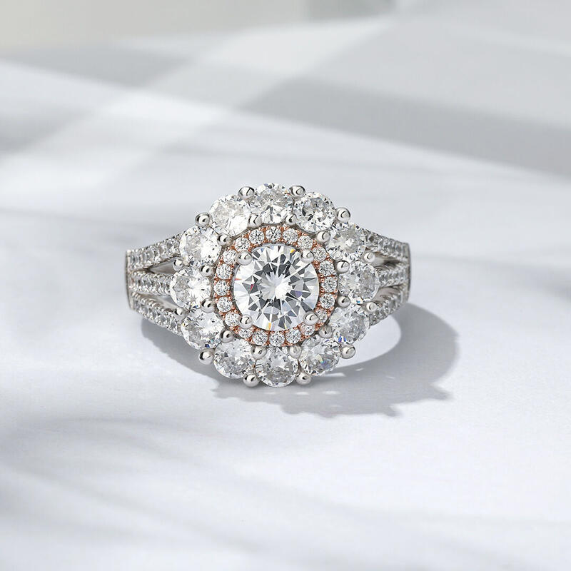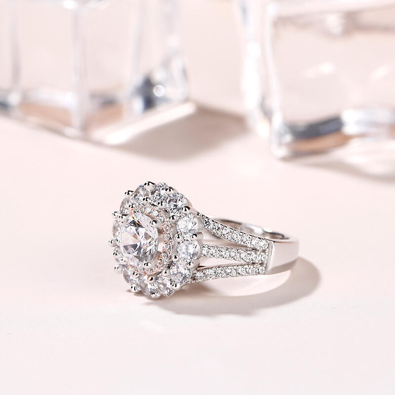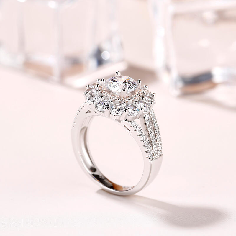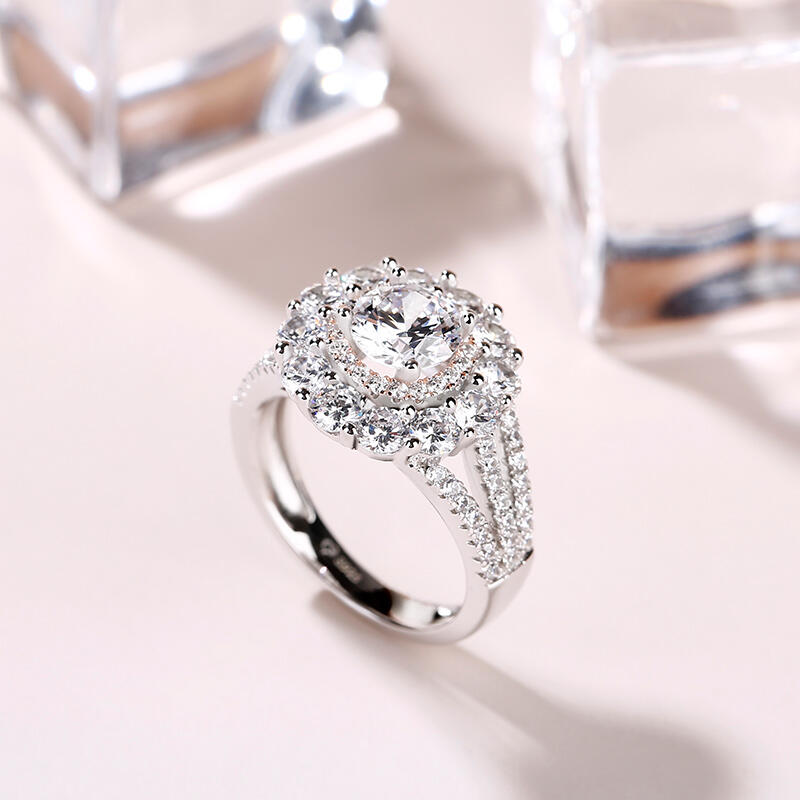 Jeulia Flower Inspired Double Halo Round Cut Sterling Silver Ring