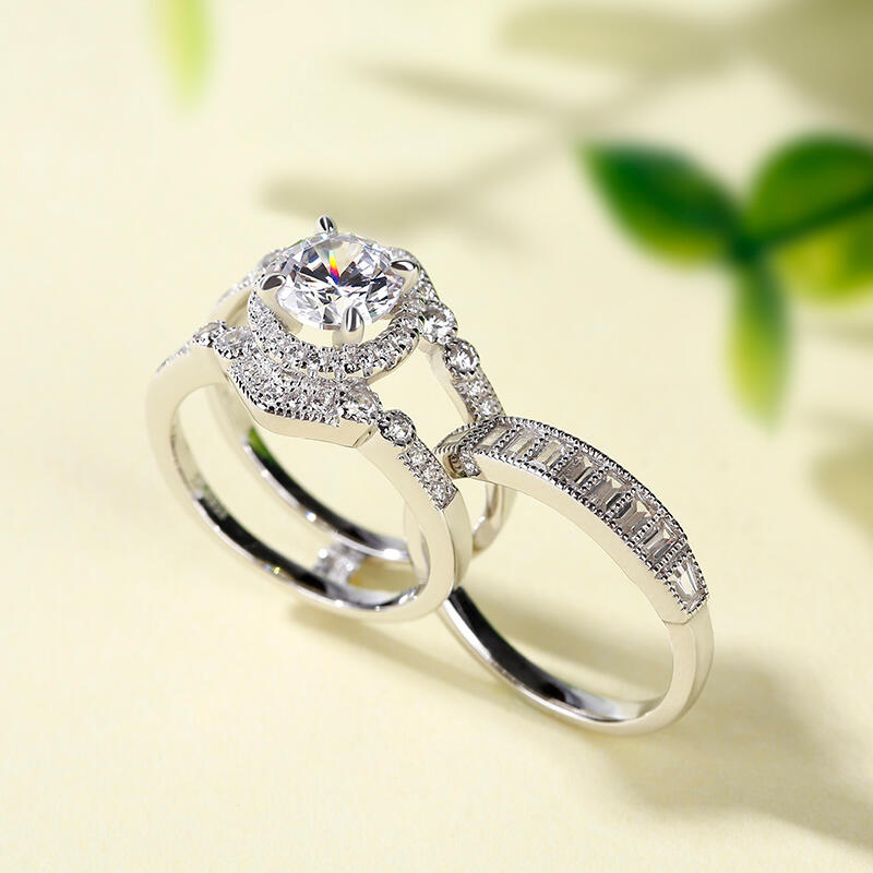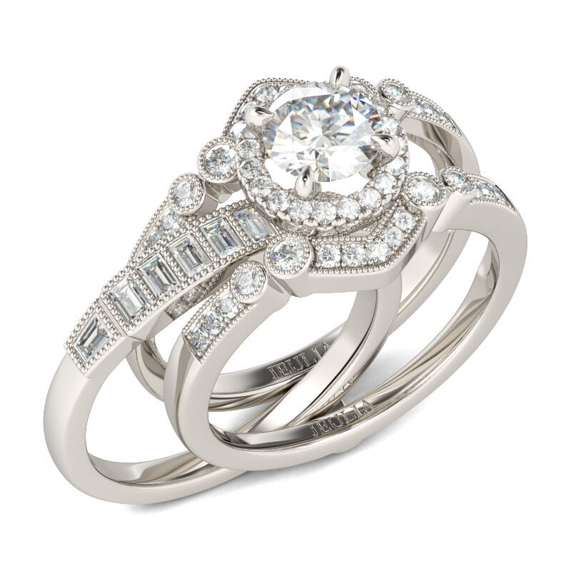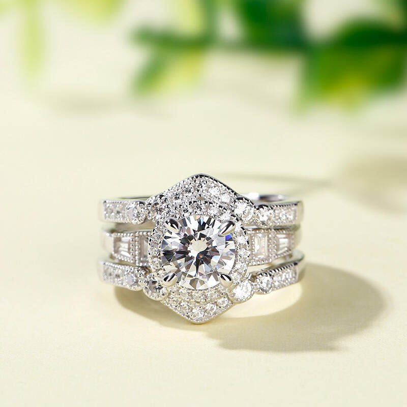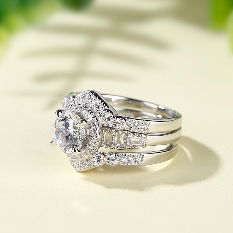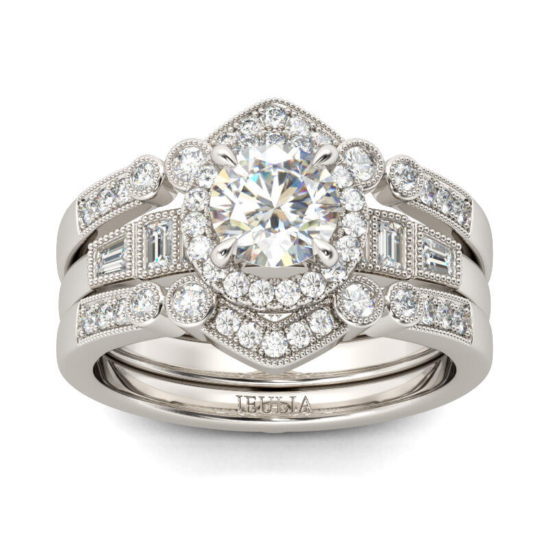 Jeulia Interchangeable Halo Round Cut Sterling Silver Ring Set