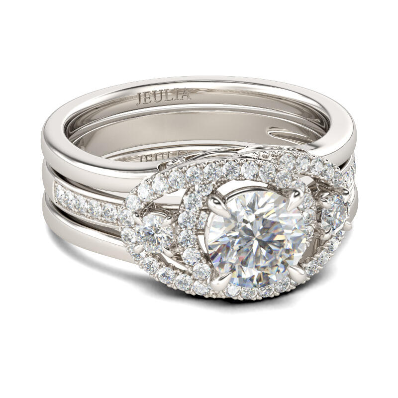 Jeulia Interchangeable Round Cut Sterling Silver Ring Set