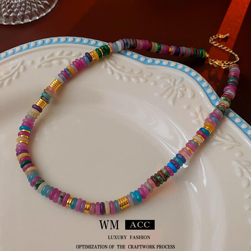 This exquisite adornment is a symphony of baroque elegance, and the vibrant hues of natural stones converge to create a wearable work of art. Gracefully draping along the collarbone, it exudes timeless beauty and sophistication. Each stone, like a stroke of a master painter's brush. With every glance, it whispers tales of romance and refinement.