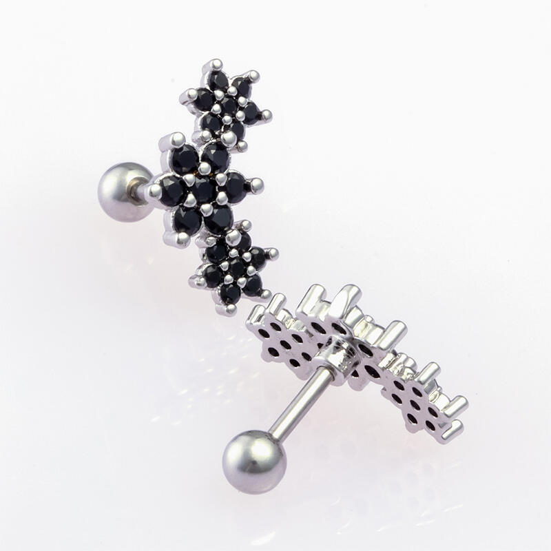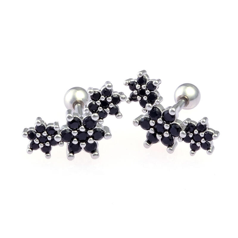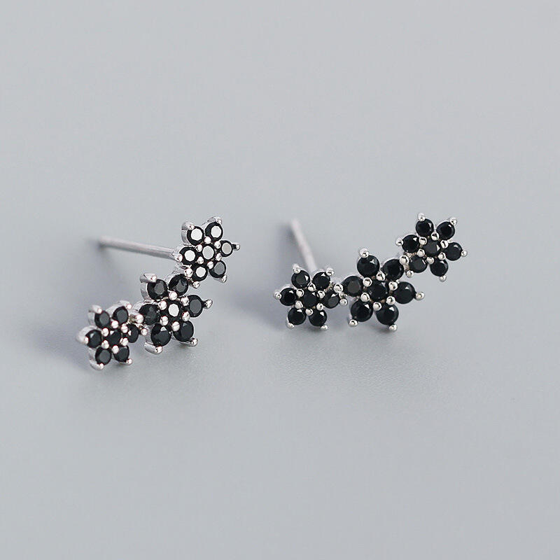 She will take on the day in style wearing these dazzling black flower earrings. Crafted in sterling silver, each earring feature three flowers lined in a beautiful curve, glittering with mysterious but sweet glamour. Make it a great gift to surprise her on a special day.