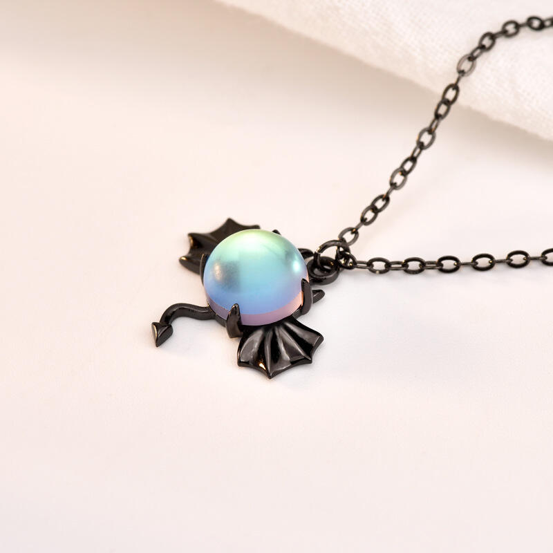 Jeulia "Dark Glamour" Little Black Devil Moonstone Sterling Silver Necklace