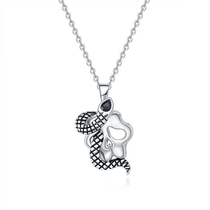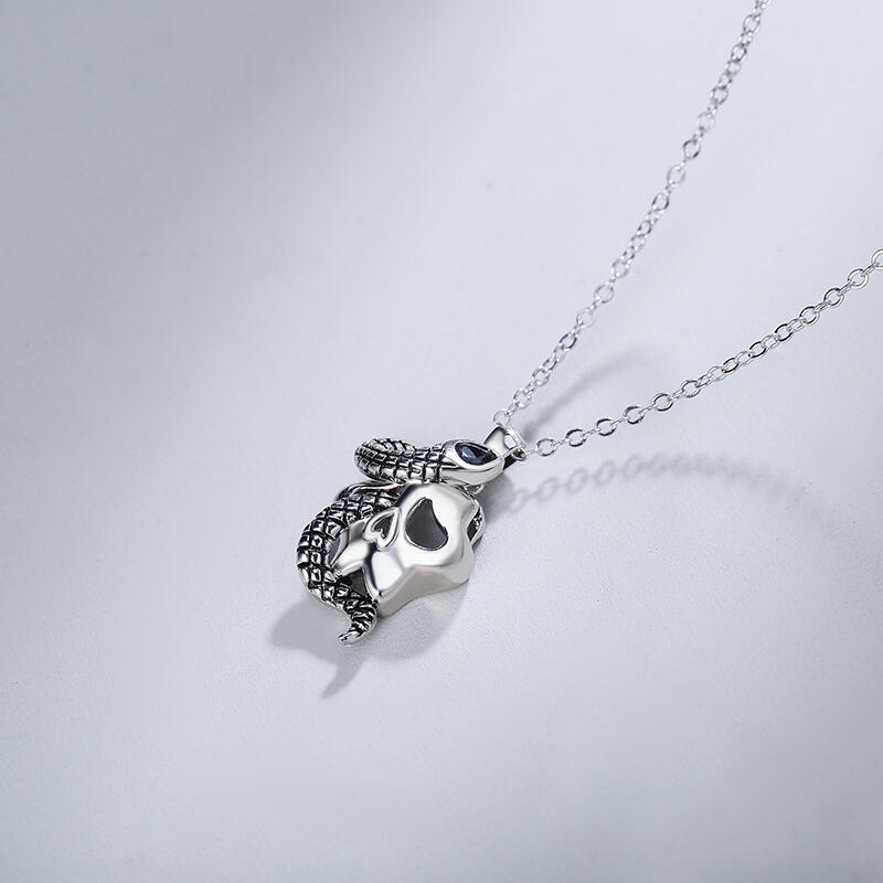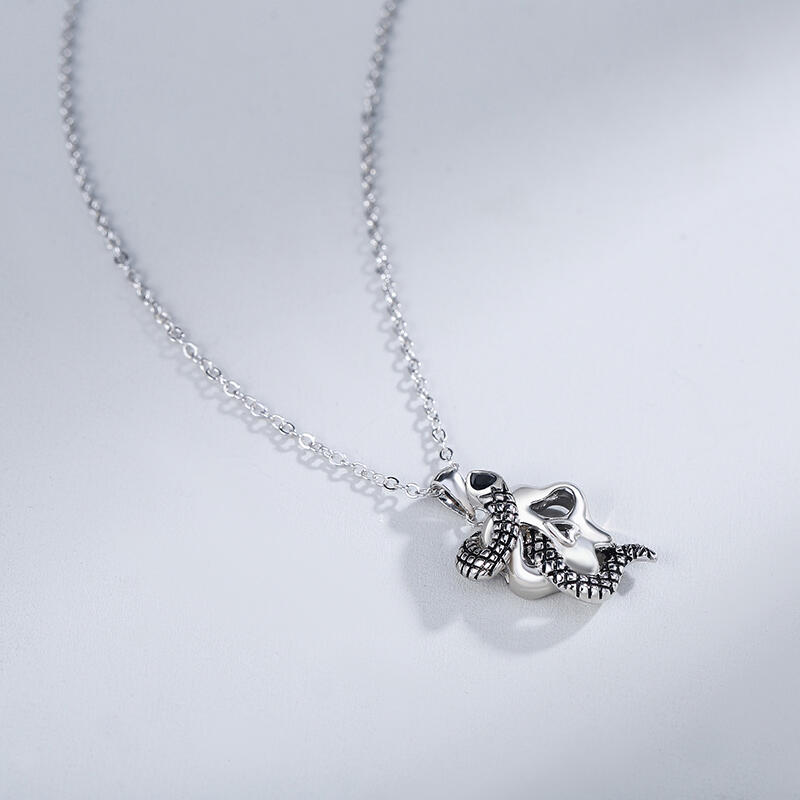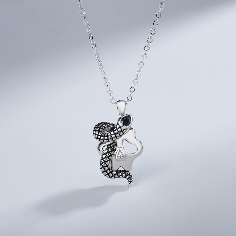 Jeulia "Die For Love" Sterling Silver Skull and Snake Necklace