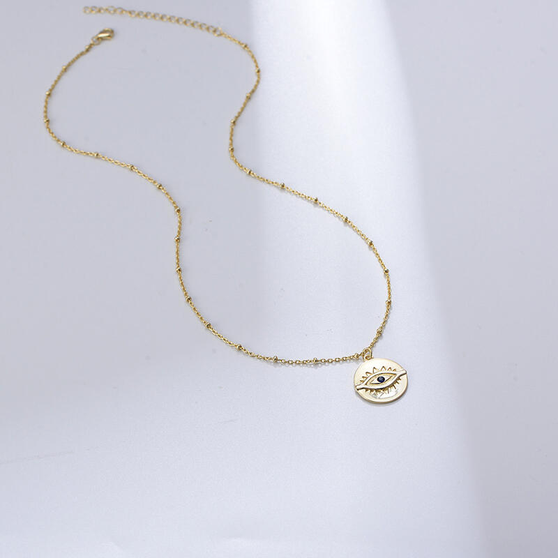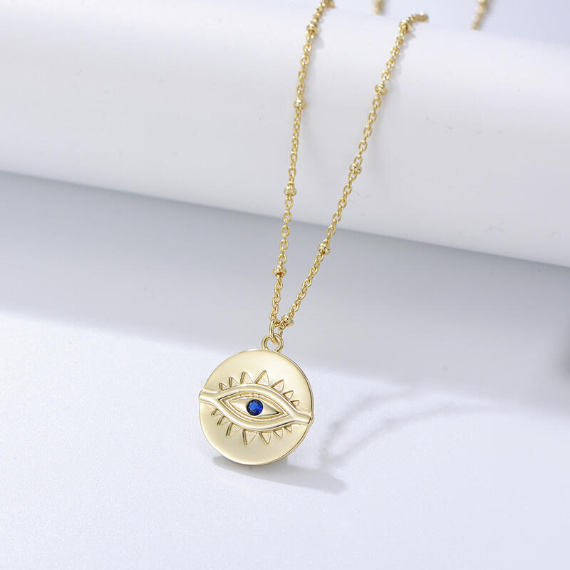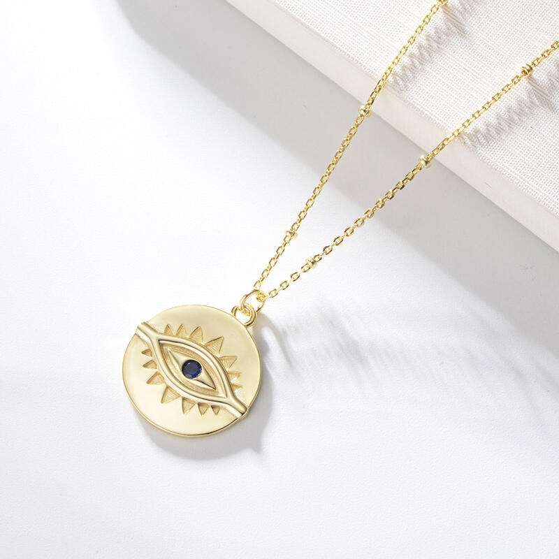 A mesmerizing way to stay protected, this brilliant necklace showcases a blue stone nestled amidst the evil eye symbol. A beautiful symbol of protection, this evil eye medallion is crafted in gold tone sterling silver.