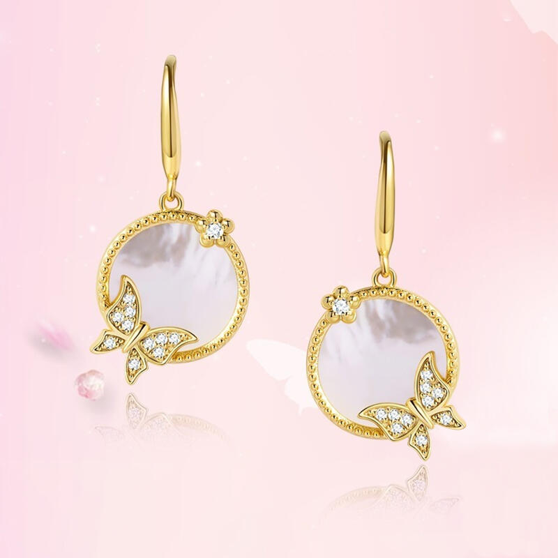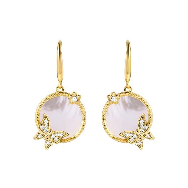 Butterflies symbolize life, change and growth. It is the pair of butterfly earrings with mother-of-pearl, which is a timeless piece of jewelry that can be worn on all occasions. The two small ornaments of each mother-of-pearl earring give them a glamorous, elegant look while remaining subtle and discreet.