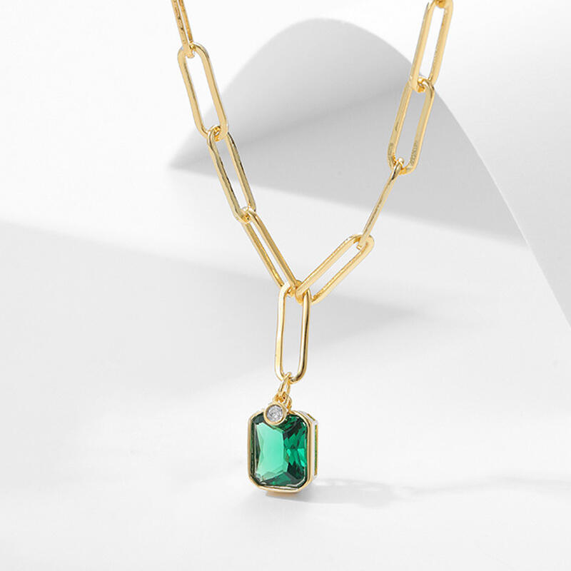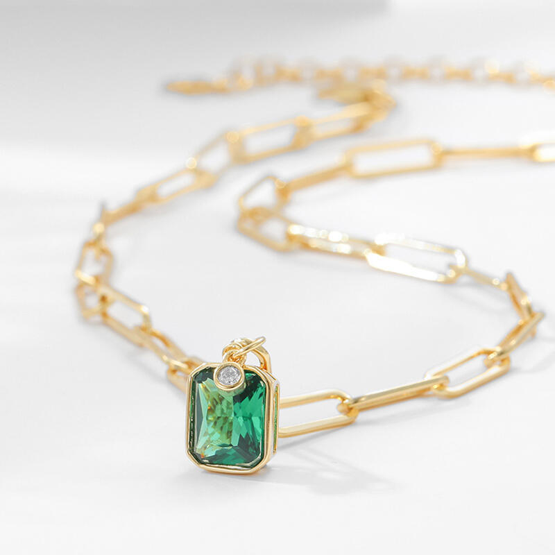 This gorgeous gemstone necklace is a great gift-giving choice for birthdays, anniversaries, or other special days. An ornate brilliant-cut green spinel delivers standout style when gracefully wrapped by copper plated with 18K yellow gold.