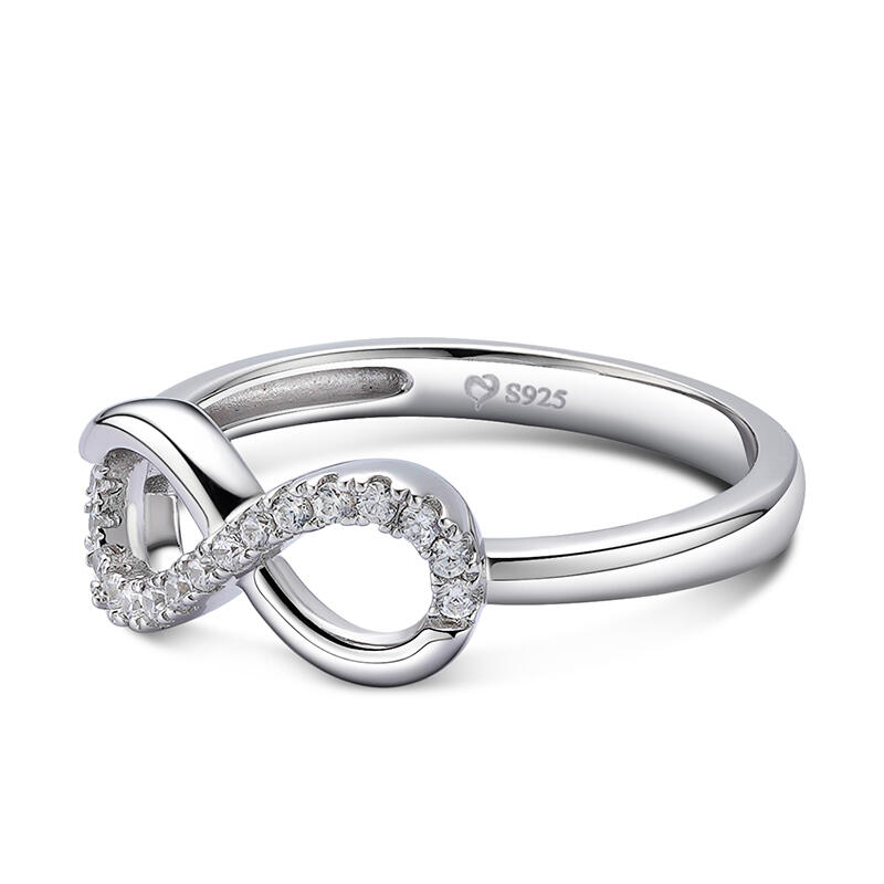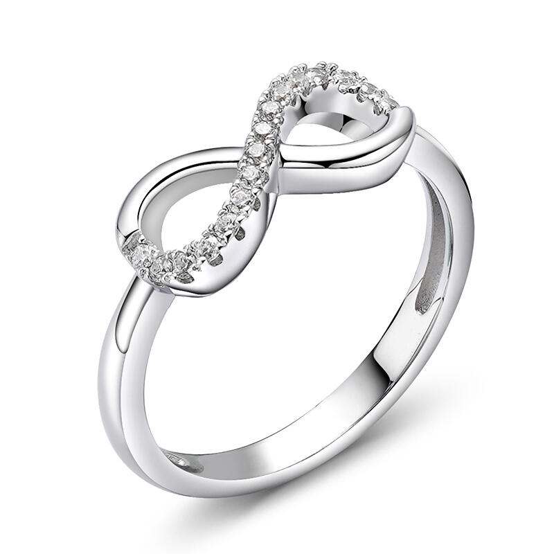 As romantic as a sweet fairytale, your love story continues to be an unforgettable journey. This dazzling ring says "I'll love you forever." It features a looping infinity symbol. Shimmering stones adorn the band for a touch of sparkle.This meaningful design is a true reminder of your everlasting love.