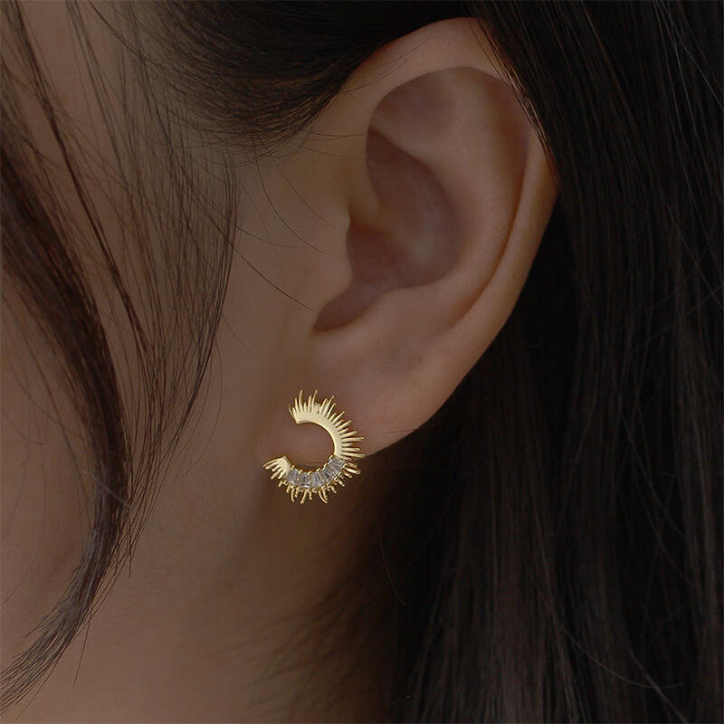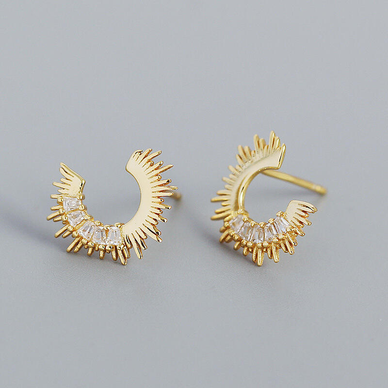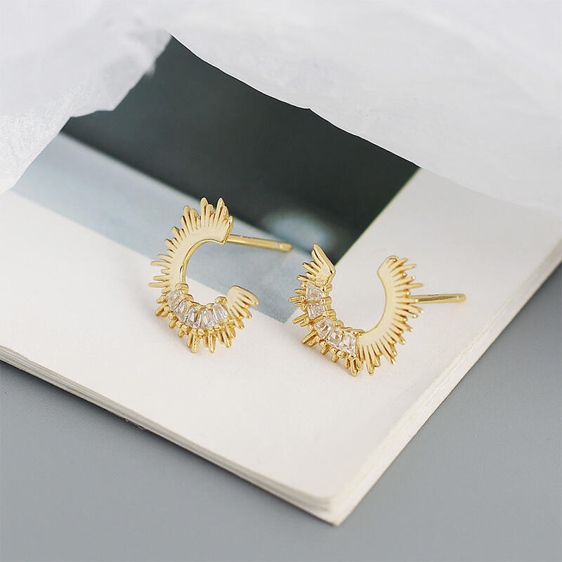 Unique and extraordinary, these chic earrings will easily win your love. Each earring features a "C" shape of jagged fashion with glittering baguette cut white stones. Show your personality and make a statement with these remarkable earrings.