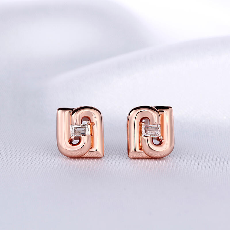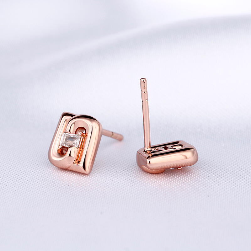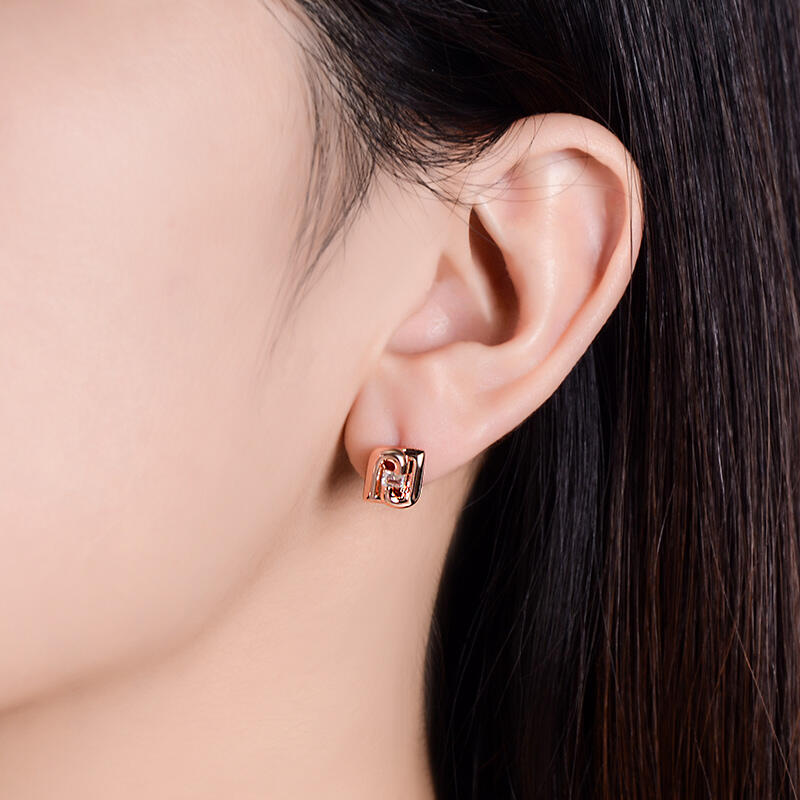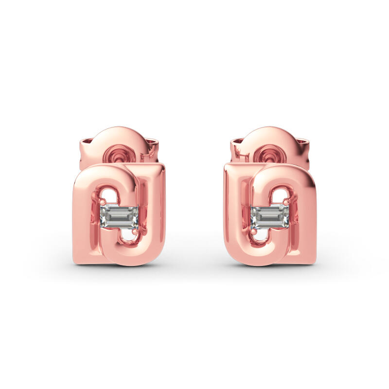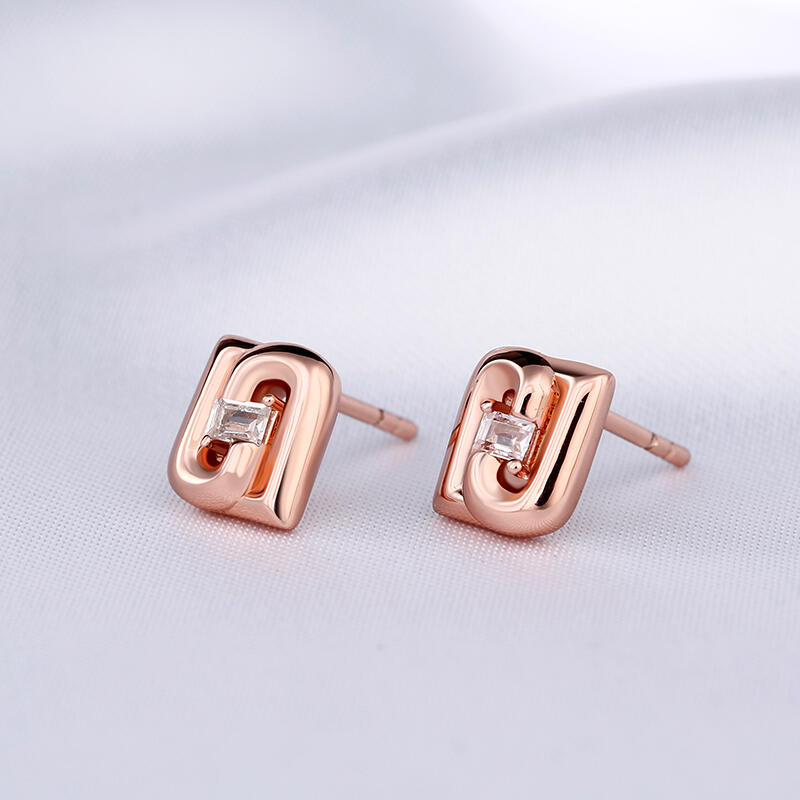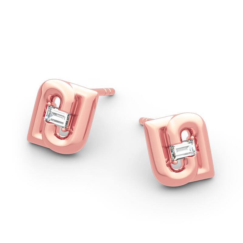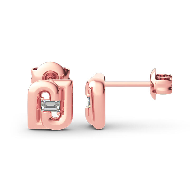 Dazzling stones are always an excellent choice and she'll absolutely adore these delightful earrings. Crafted in sterling silver, each earring showcases an emerald cut center stone surrounded by two letters "J" upside down. The feminine rose gold color adds elegance to the design. A fabulous look anytime, these earrings blend sophistication with radiance and sparkle.