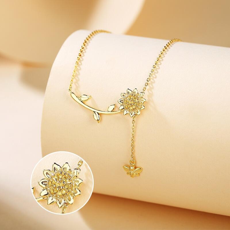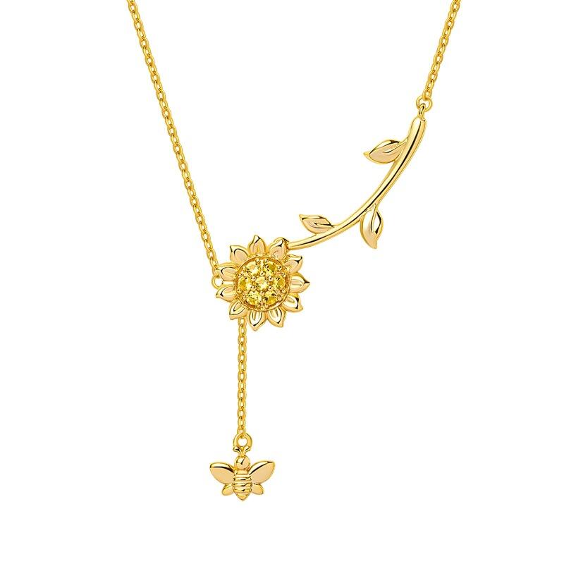 Jeulia "Lovely Garden" Sunflower & Bee Sterling Silver Necklace