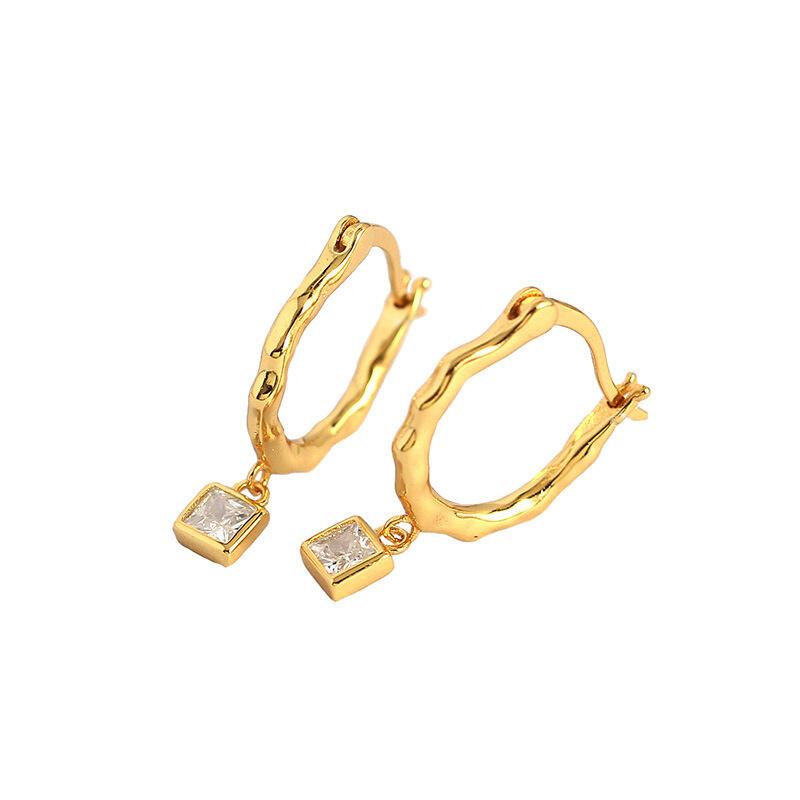 Chic and effortless, these gold-tone 925 sterling silver hoop earrings top off your look in sparkling style. These eye-catching hoops shimmer with princess-cut stones in a bezel setting. Captivating with a bright polished shine, these earrings are surely to make waves.