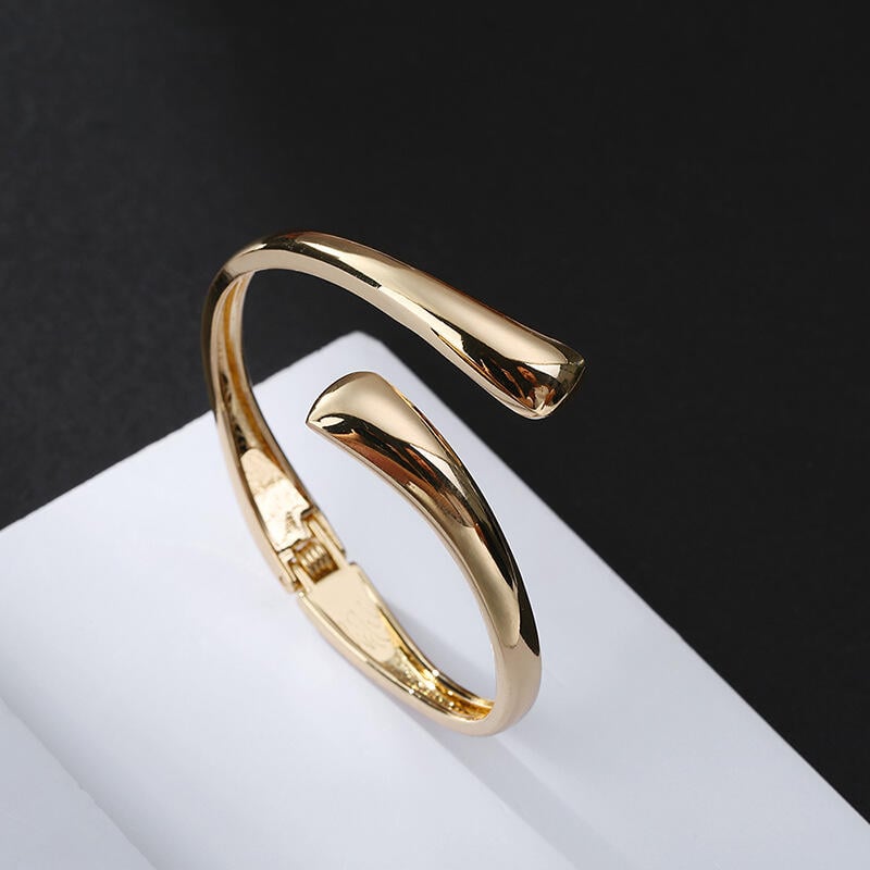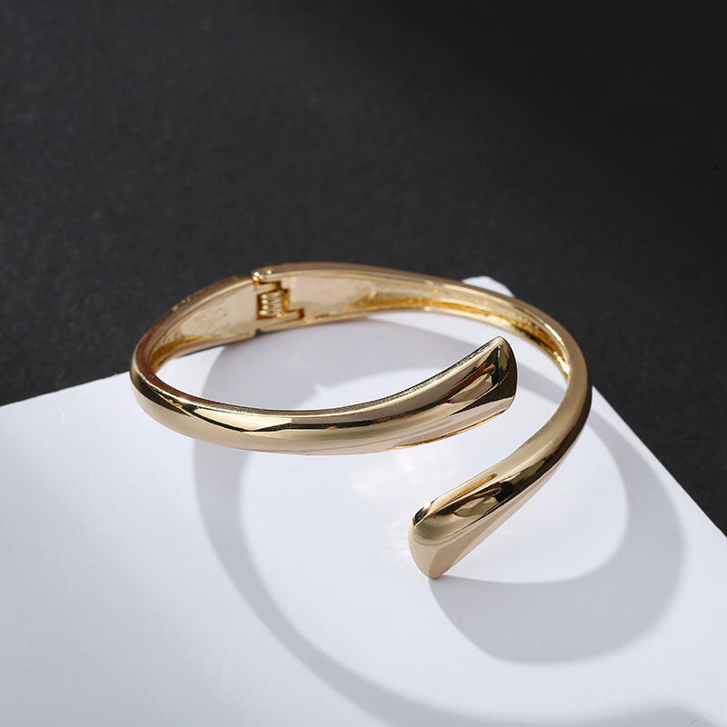 The minimalist line symmetrical spring bracelet, an exquisite adornment designed to grace the wrist of a discerning woman. Its delicate, gold-plated mirror-like finish reflects not just light, but the innate beauty of the wearer herself. With its symmetrical design, it embodies perfect harmony and balance, a testament to the grace and strength that resides within every woman.