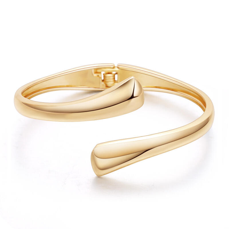 Jeulia "Minimalist Lines" Bypass Symmetrical Spring Gold Tone Bangle Bracelet