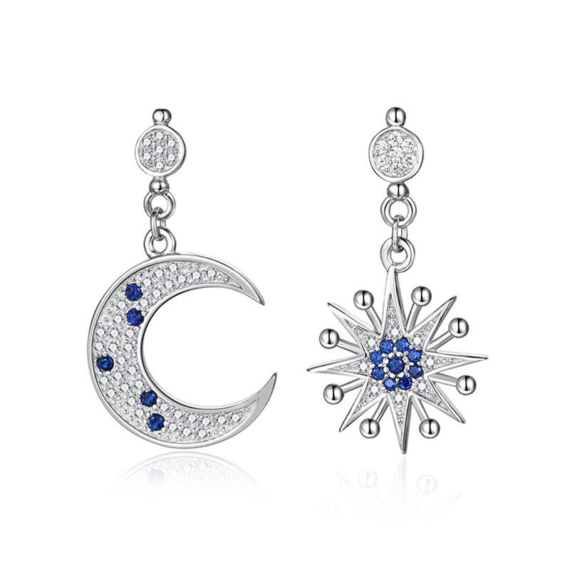 When you were a child, did you really want to take off the beautiful stars and moon in the sky to adorn you? Now we have designed these star and moon mismatched earrings, which allows you to relive the sweet dream of childhood. Our star and moon asymmetrical earrings allow you show this beauty to your ears at any time.