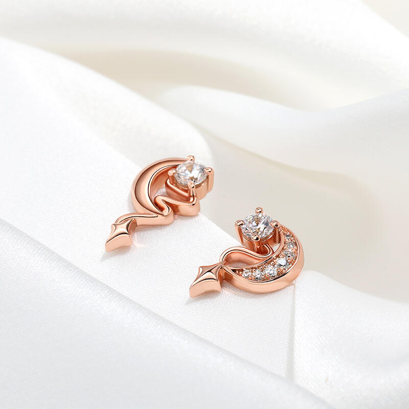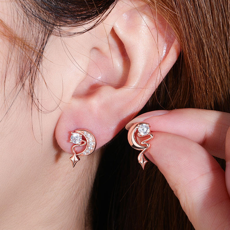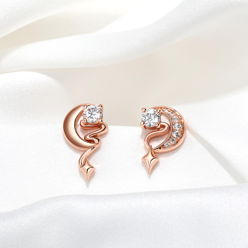 With a delicate star that sparkles and dangles from a moon, you will shine every time you wear these earrings. With moon and stars inspired jewelry being popular, you are sure to love this precious moon and star earrings.