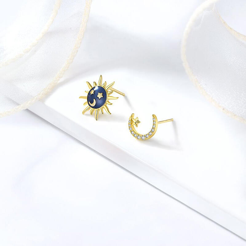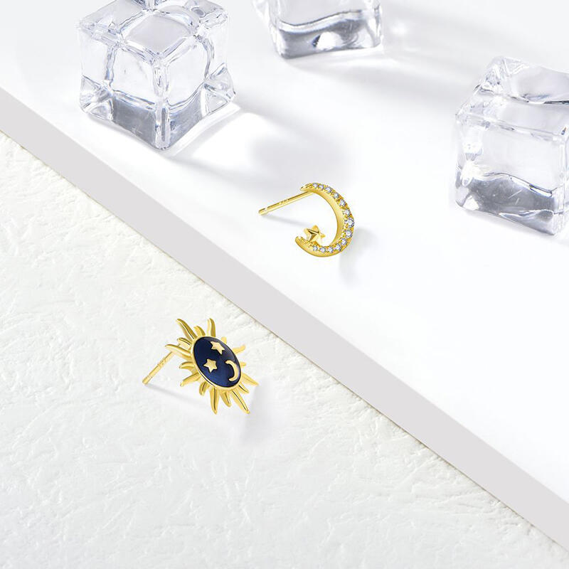 The "sun and moon" studs symbolize the greatest love story of all time. "The sun loved the moon so much, that he died every night to let her breathe". This gorgeous pair of stud earrings makes the perfect gift for sterling silver jewelry lovers or a lovely new addition to your own jewelry collection.