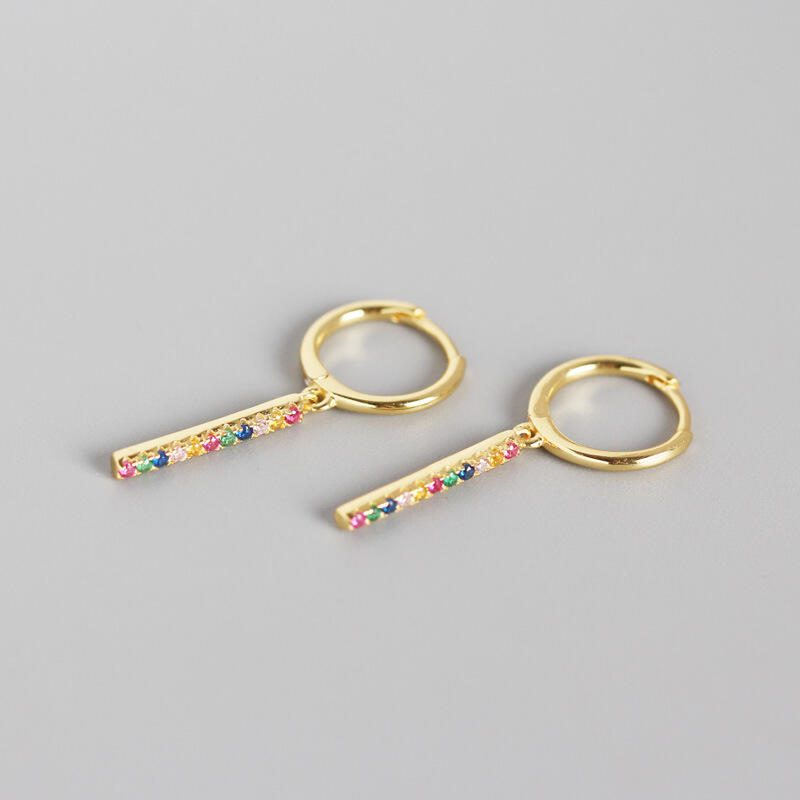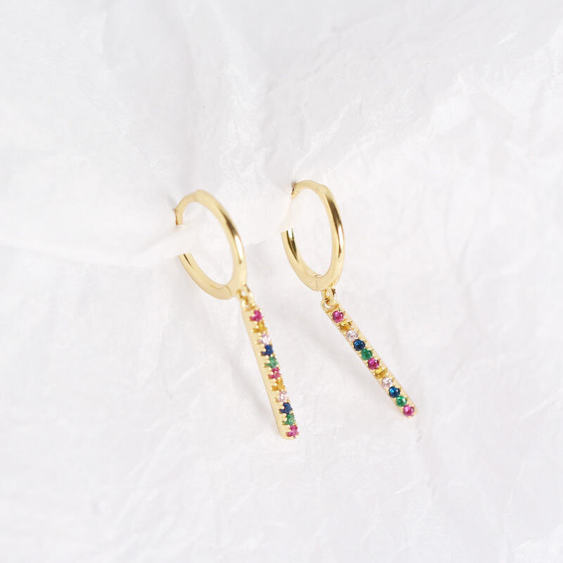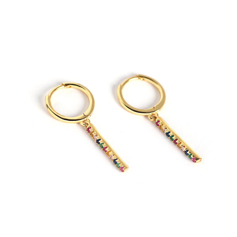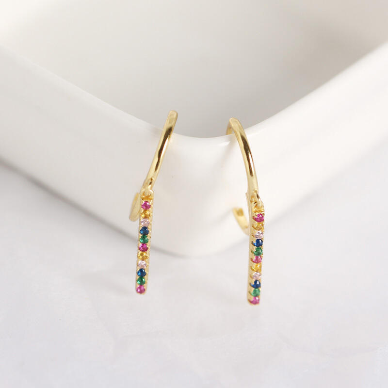 An undeniably delightful look, these drop earrings add a touch of elegance to her attire. Crafted in sterling silver, each spectacular earring features a row of colorful round-cut stones, just like the rainbow over the sky. She'll love the compliments she receives when she wears these refined earrings.
