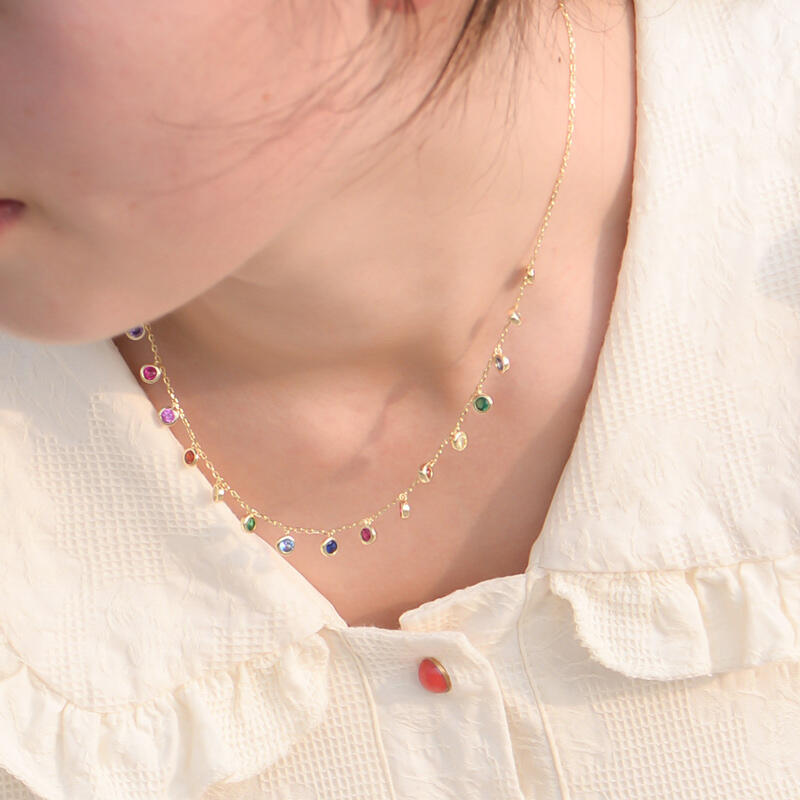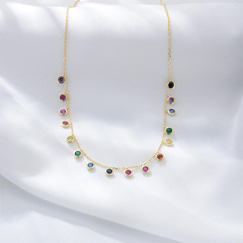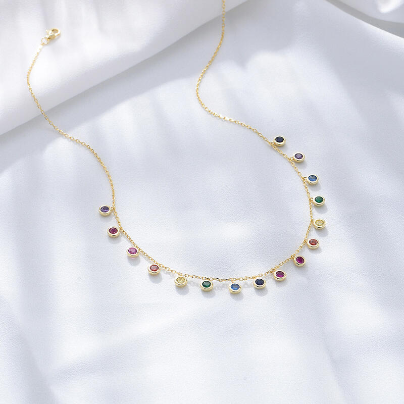 Jeulia "Playful Colors" Multi-color Stones Sterling Silver Necklace