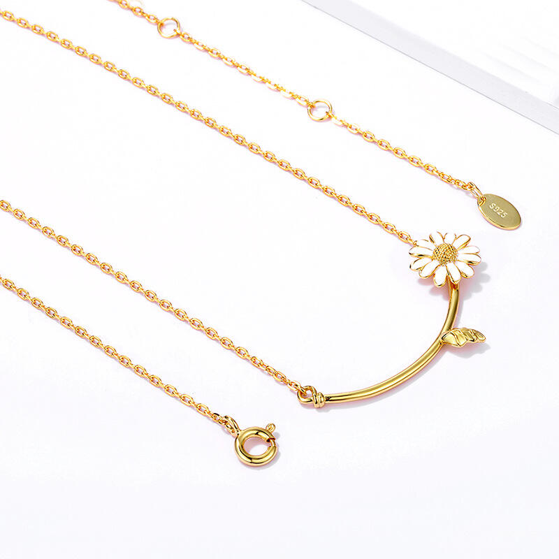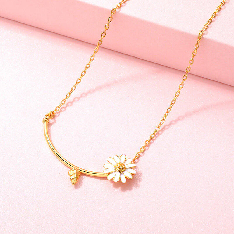 This sweet and feminine flower necklace is crafted in warm sterling silver, vividly showcasing the stem, leaf, and petals of daisy. The dreamy design will give you a smell of spring and endow you with full energy!