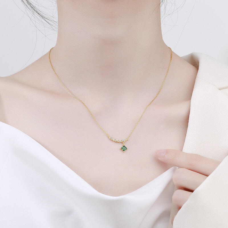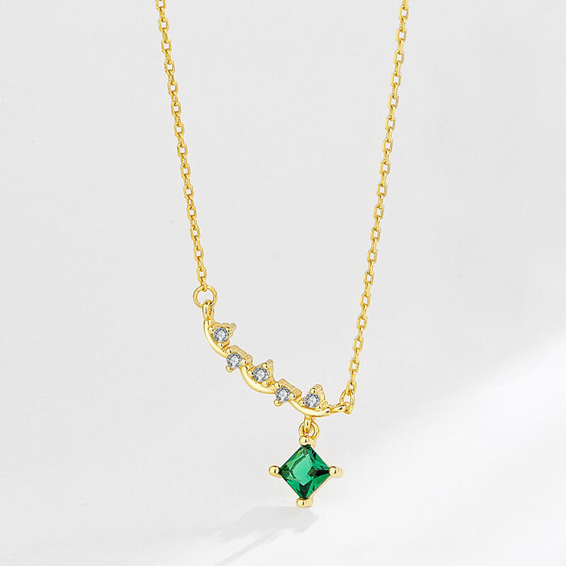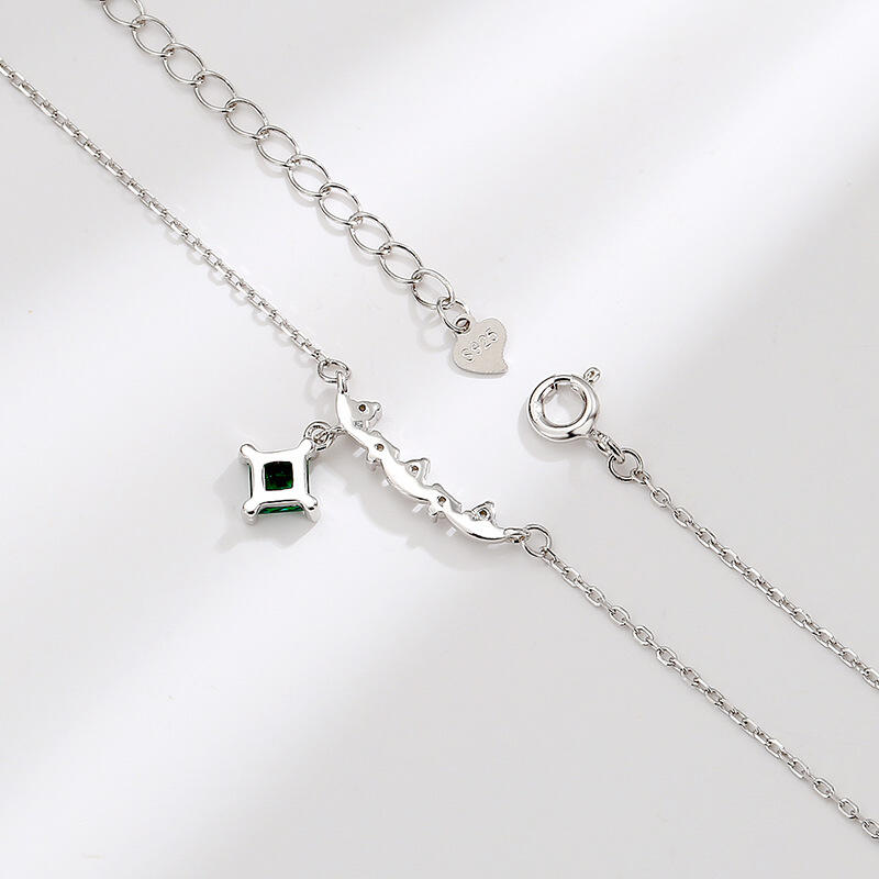Create a wonderful memory when you present this glimmering necklace to the one you love. Regal and radiant, this necklace is perfect for that special evening out. It showcases five shimmering round stones in a clever wave pattern and a green stone dangles to create this eye-catching style.