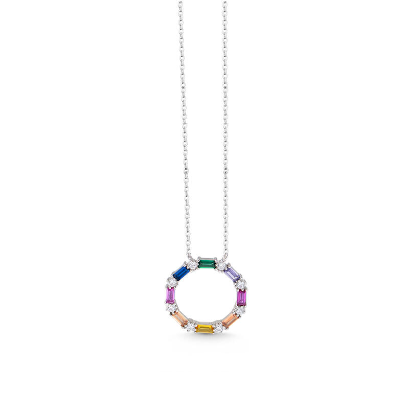Jeulia "Sweet Candy" Multi-colored Circle Sterling Silver Necklace