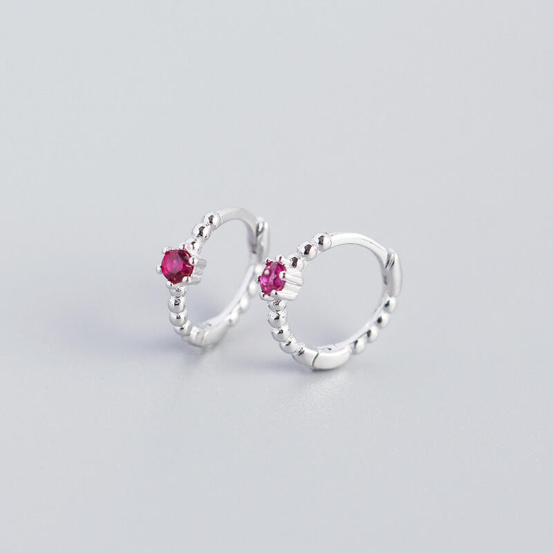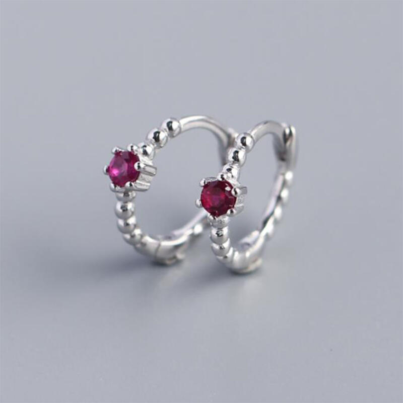 Perfect for any occasion, these hoop earrings are a great addition to your jewelry box. Crafted in 925 sterling silver, each hoop sparkles with a dainty round-cut fuchsia stone. Radiant with a brilliant buffed luster, these earrings will surely turn heads.