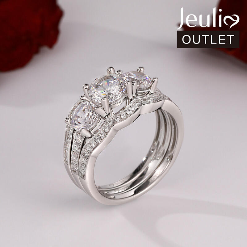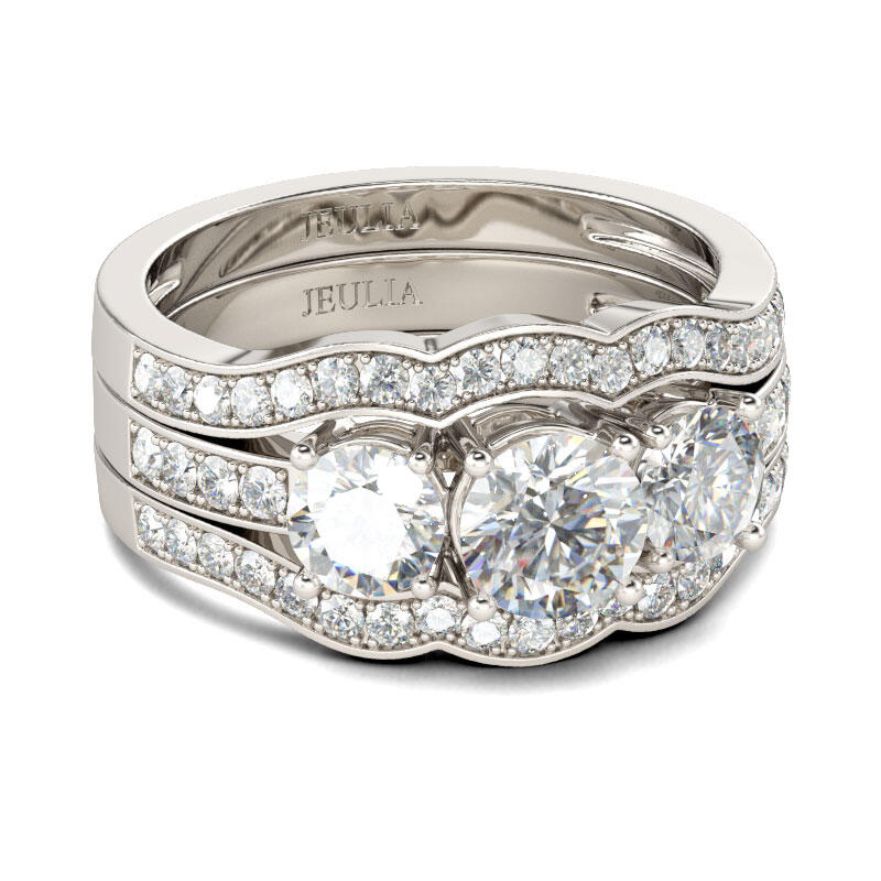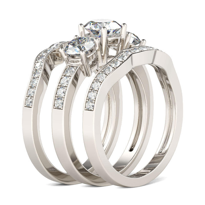 Jeulia 3PC Three Stone Round Cut Sterling Silver Ring Set