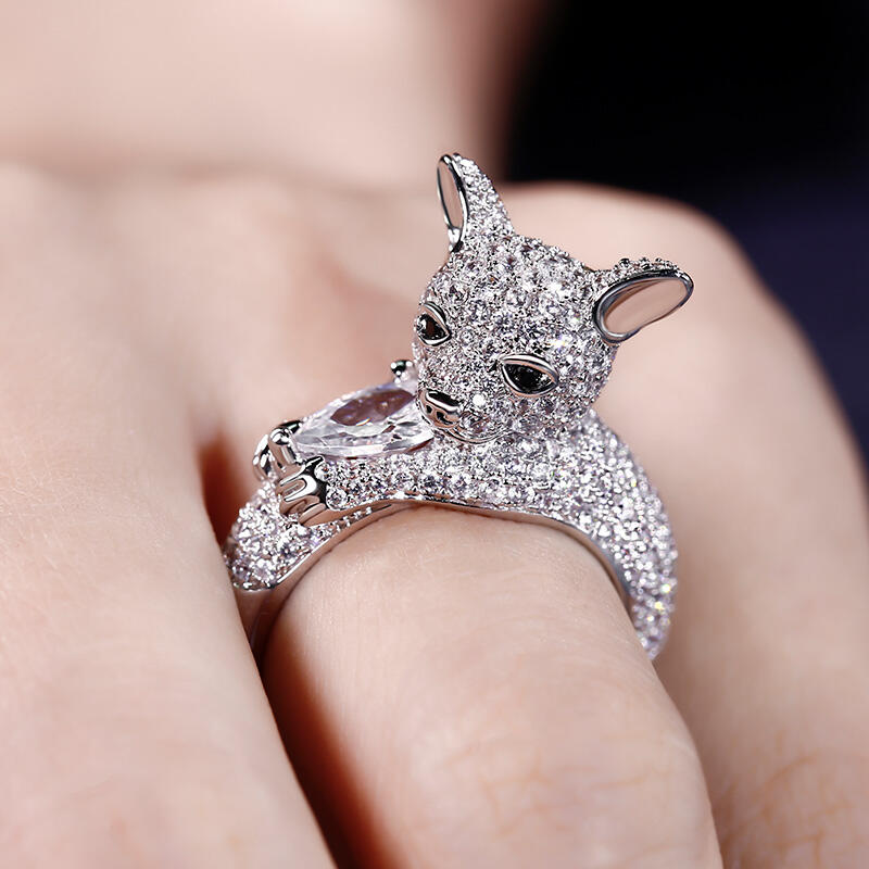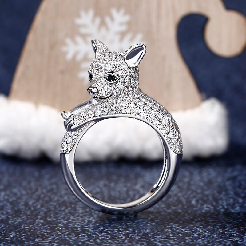 Jeulia "Always By My Heart" Puppy Sterling Silver Ring