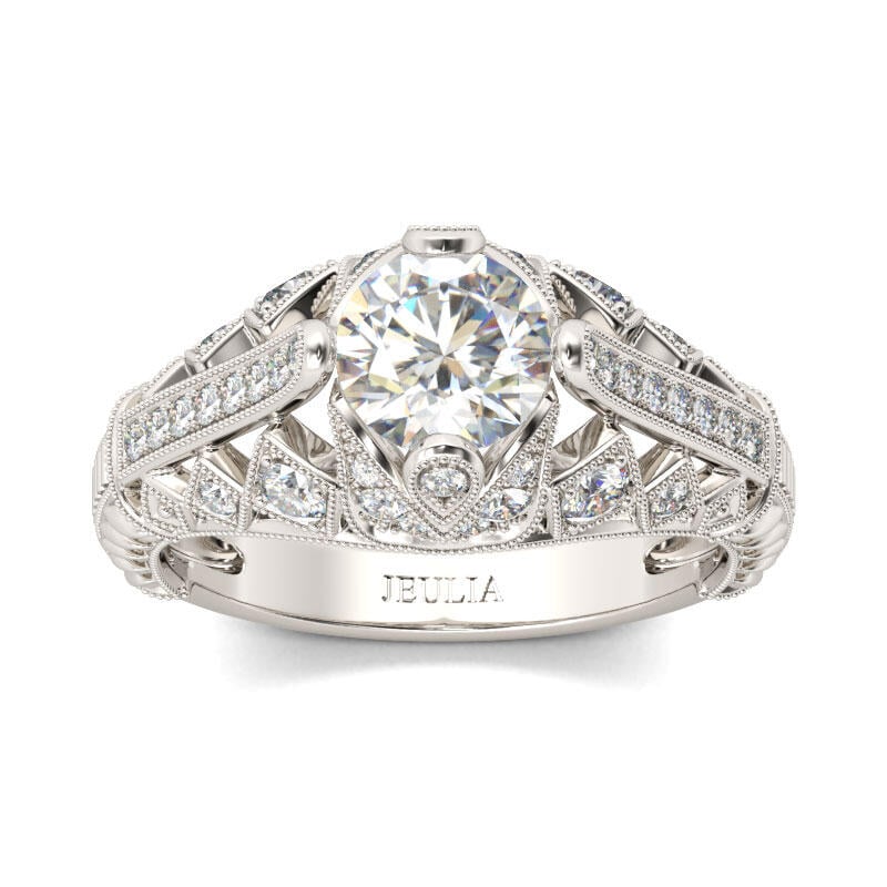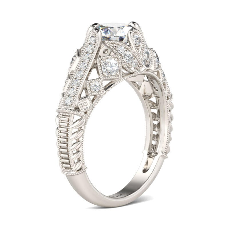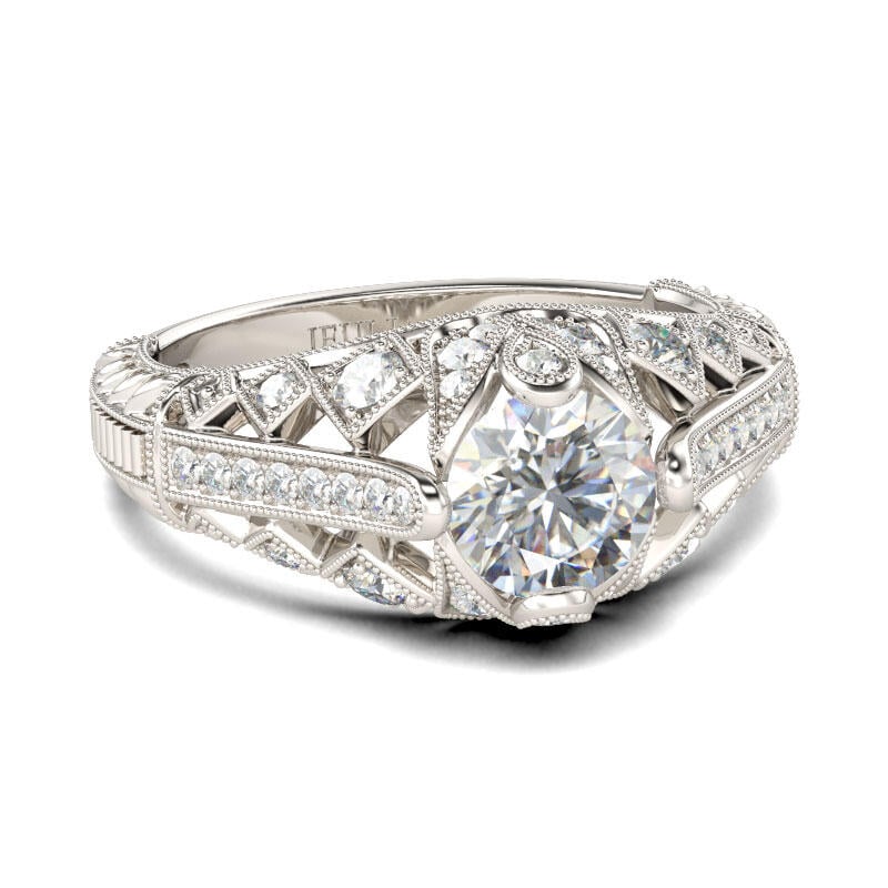 On the day you ask for her hand, honor her with an engagement ring as remarkable as she is. Created in sterling silver, the eye is drawn to the sparkling round cut center stone. Intricate milgrain detailing adds vintage elegance and completes the design. This ring is classically beautiful and stunning on every hand.