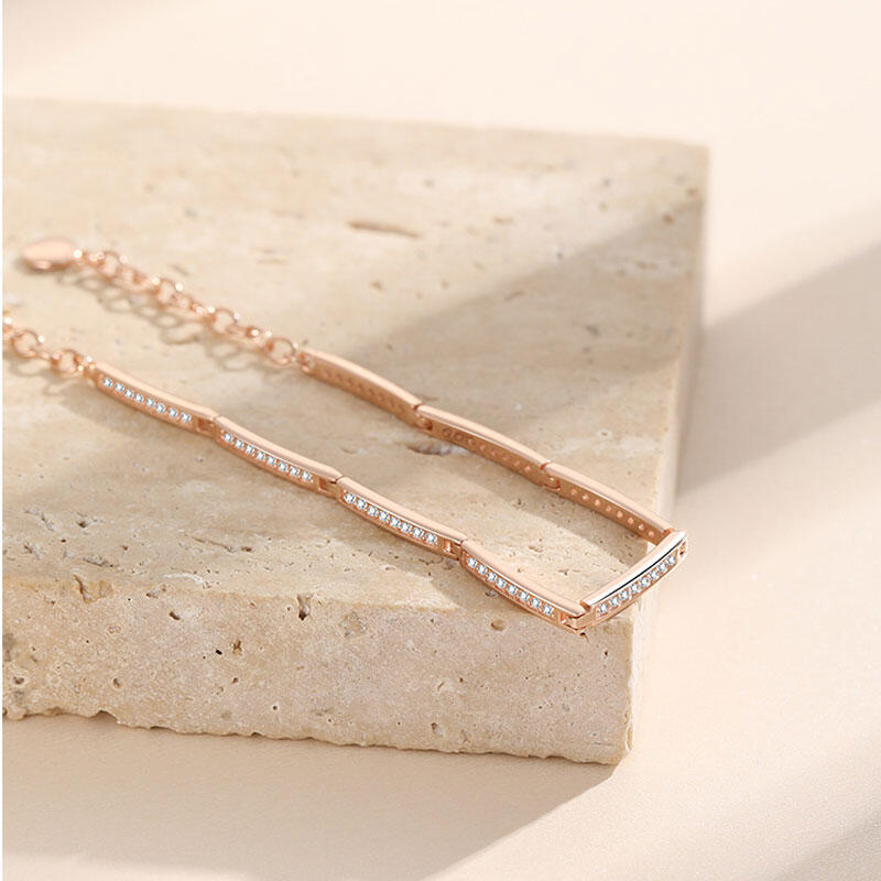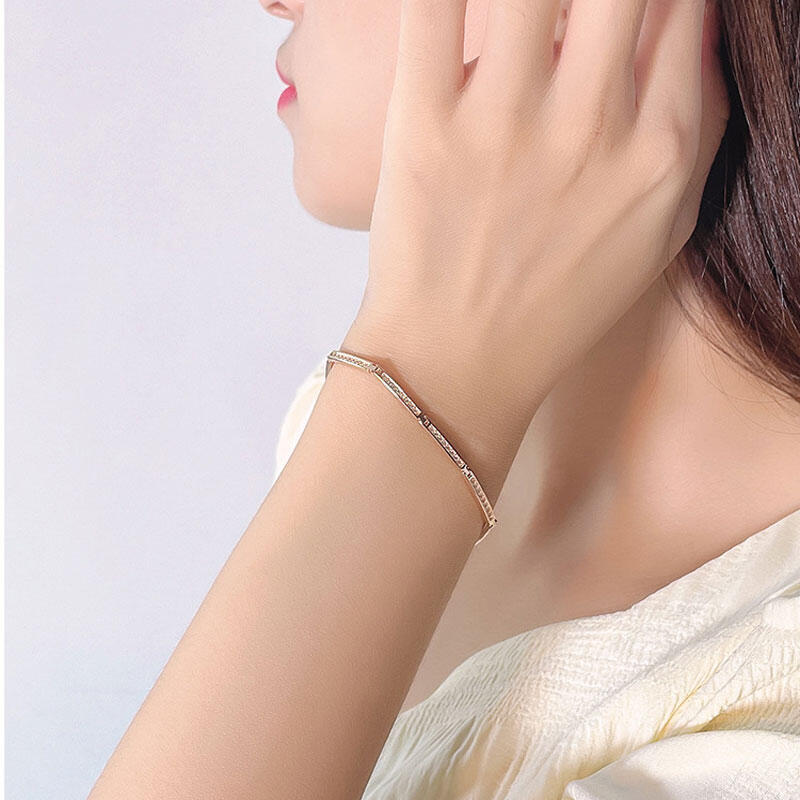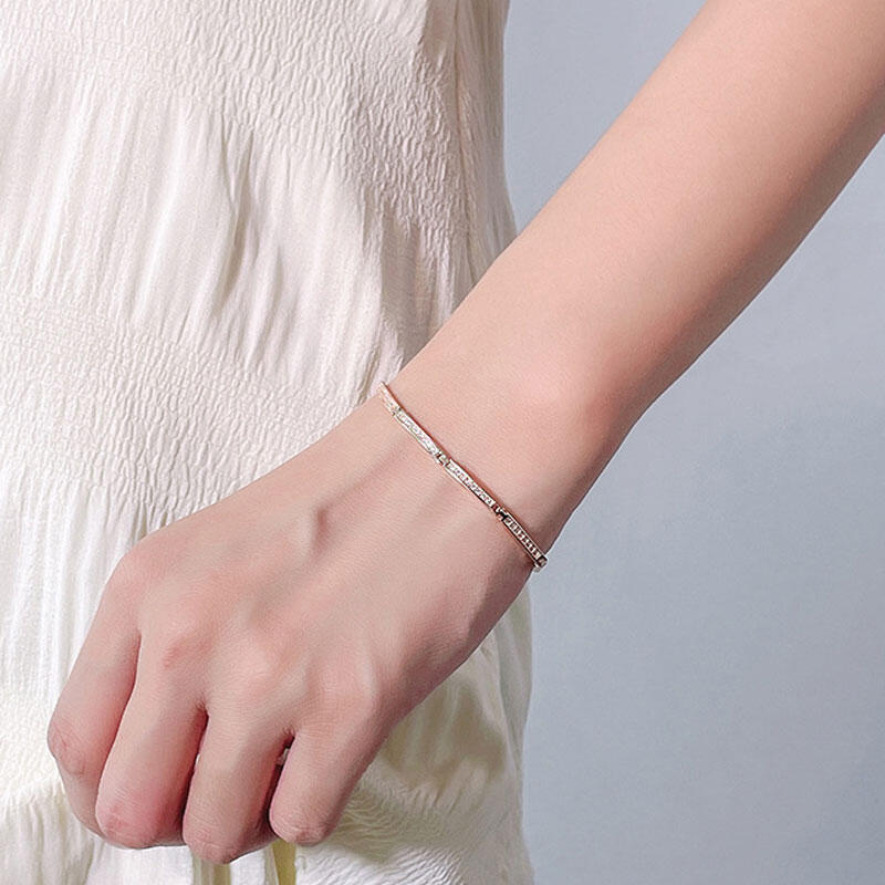 Inspired by bamboo, the design adds texture to your outfit in the simplest and classiest way. The bracelet comprises of 8 bamboo links, every links are set with white round brilliant cut stones in a pave setting.