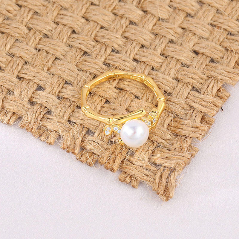 Jeulia Bamboo Cultured Pearl Sterling Silver Adjustable Open Ring