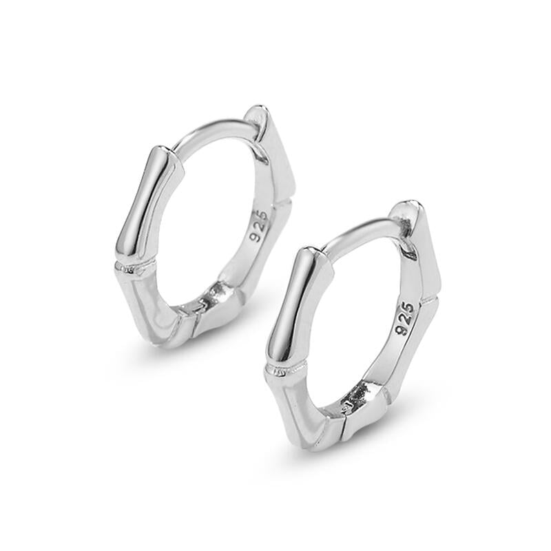 With exotic flair, these bamboo-styled hoop earrings bring an enchanting look to her wardrobe. Crafted in sterling silver, each hoop features a realistic bamboo design. Perfect for summer outfits and more.