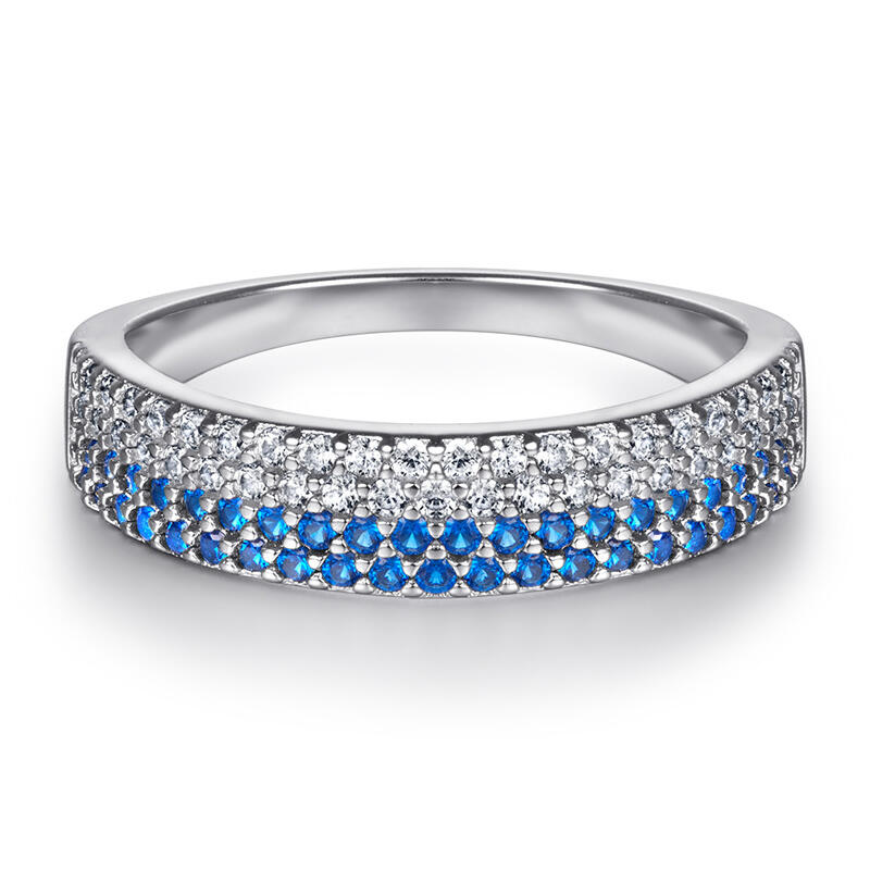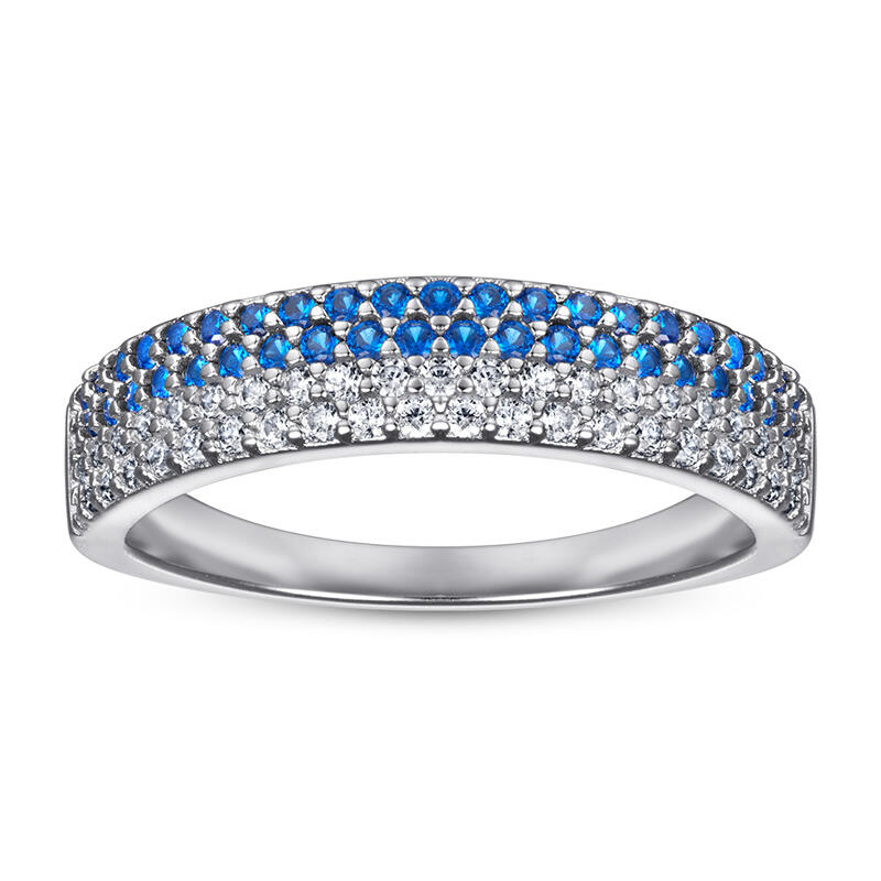 Jeulia Blue and White Four Row Sterling Silver Women's Band