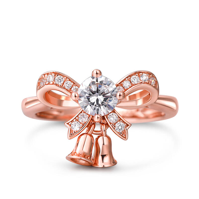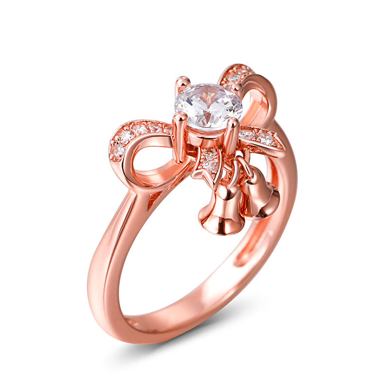 Jeulia Bowknot Jingle Bell Round Cut Sterling Silver Ring