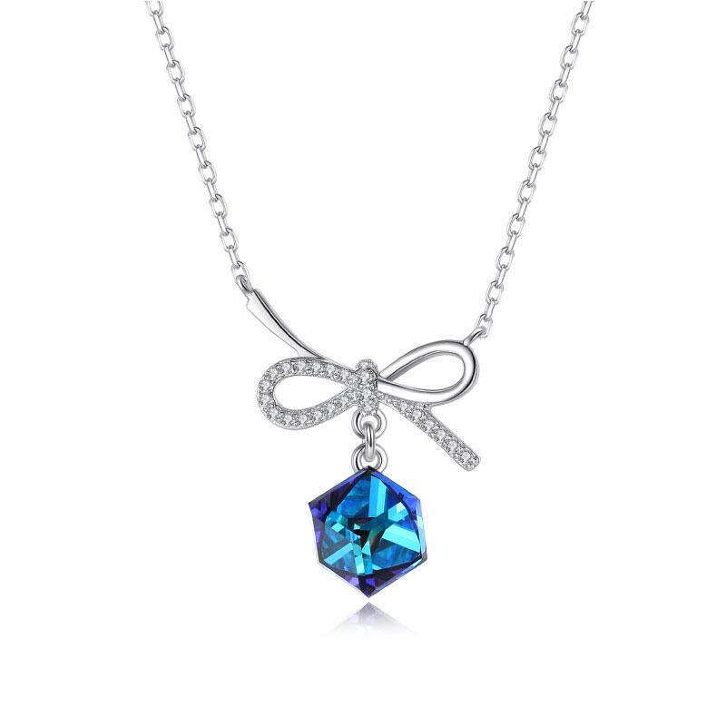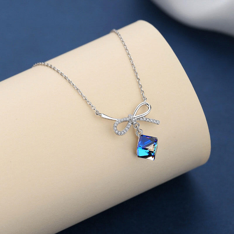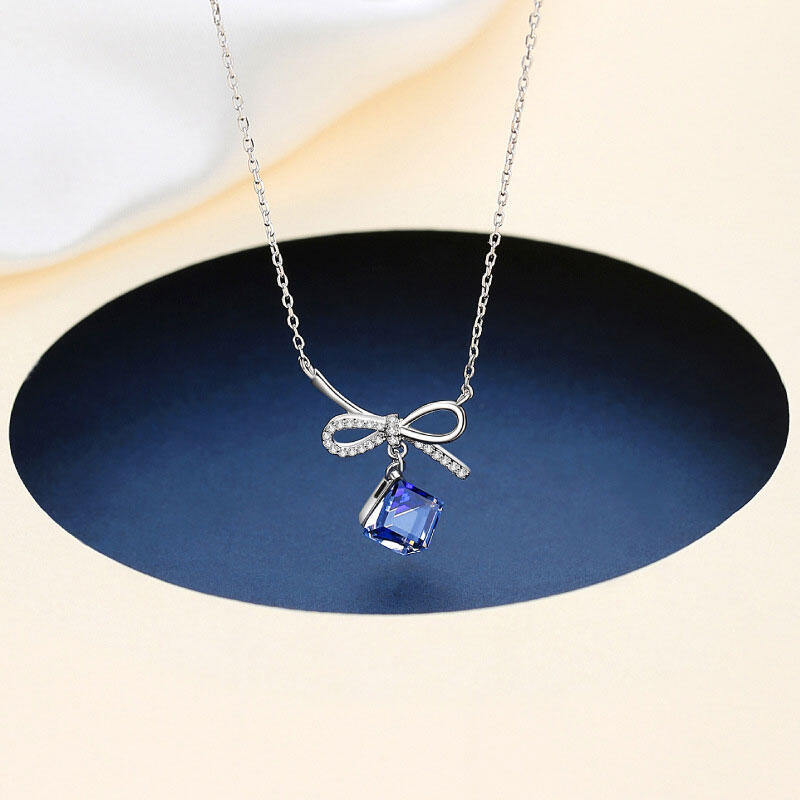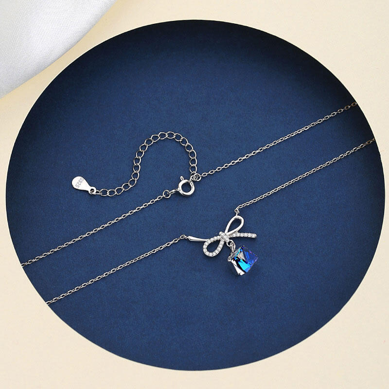 Jeulia Bowknot with Sapphire Stone Sterling Silver Necklace