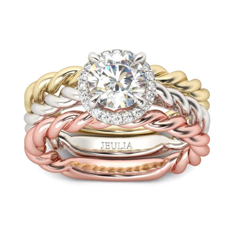 Jeulia Braided Halo Round Cut Sterling Silver Ring Set