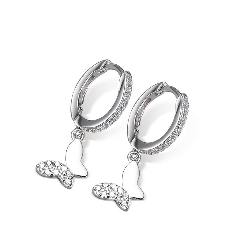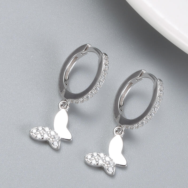 Timeless and feminine, these versatile earrings will elevate your foundation wardrobe. Showcasing playful butterfly motifs adorned in shimmering pave, this unique pair is finished with white-gold plating. Designed for pierced ears, style yours short or long by attaching the dangling drops - the choice is yours depending on your mood or outfit.