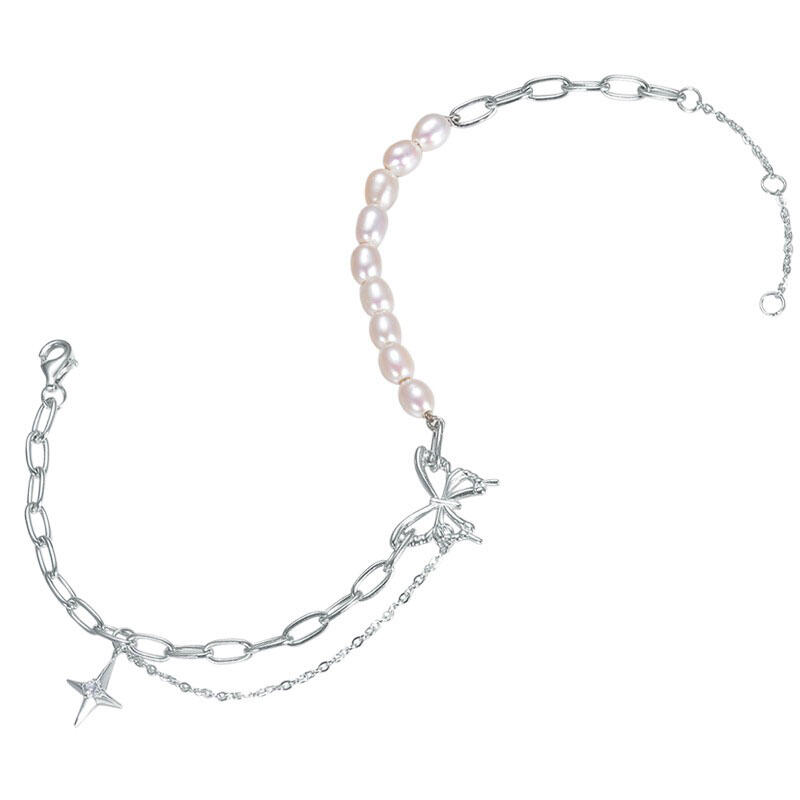 Flaunt a whimsical look with this butterfly pearl bracelet, featuring a dazzling butterfly pendant set into a freshwater pearl adorned bracelet. Pair this adorable piece with a cute charm bracelet and a floral midi dress for a breathtaking view.
