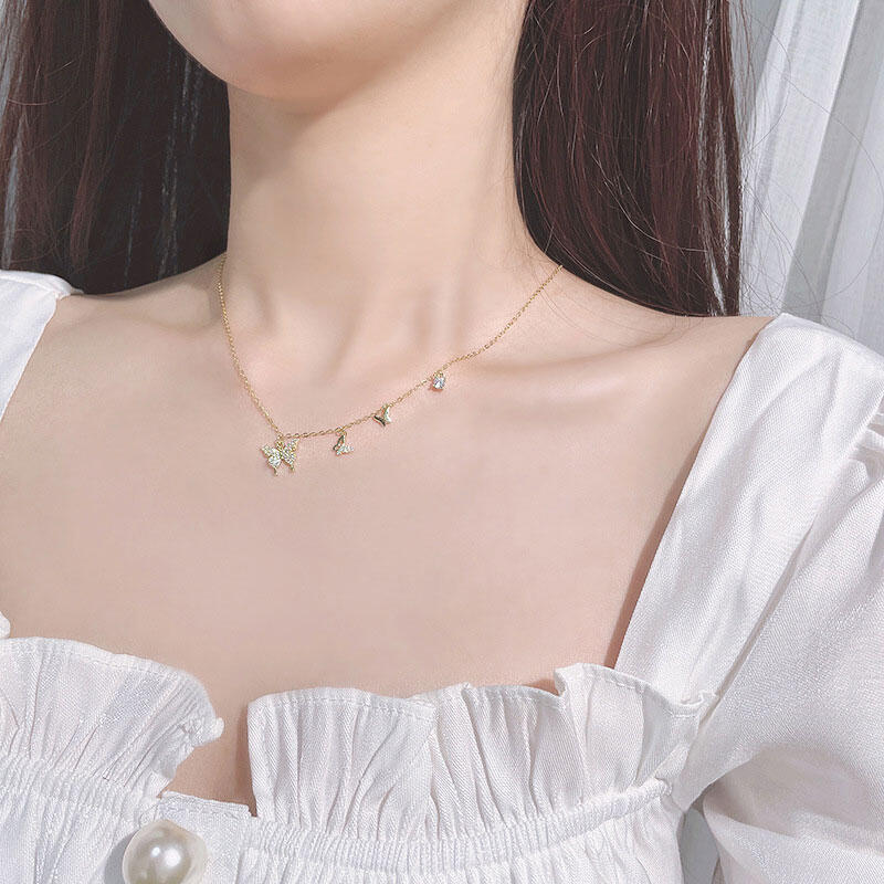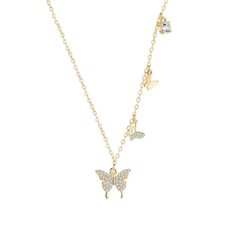 Add a soft touch to your outfit with this pretty pendant necklace! Three gold-tone butterflies sit on a delicate gold-tone chain. The perfect partner to white T-shirts, cashmere jumpers, denim, or eveningwear – essentially, anything goes.