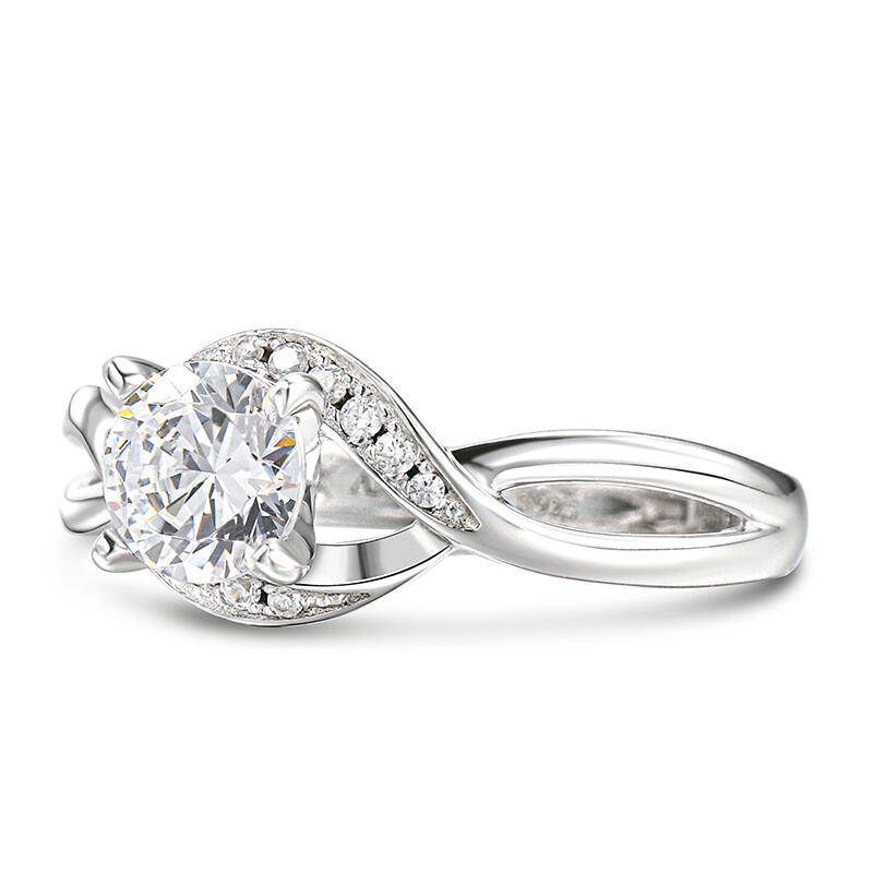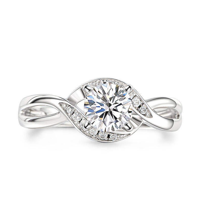 Jeulia Bypass Round Cut Sterling Silver Ring