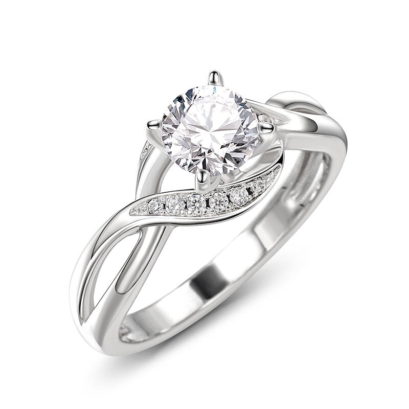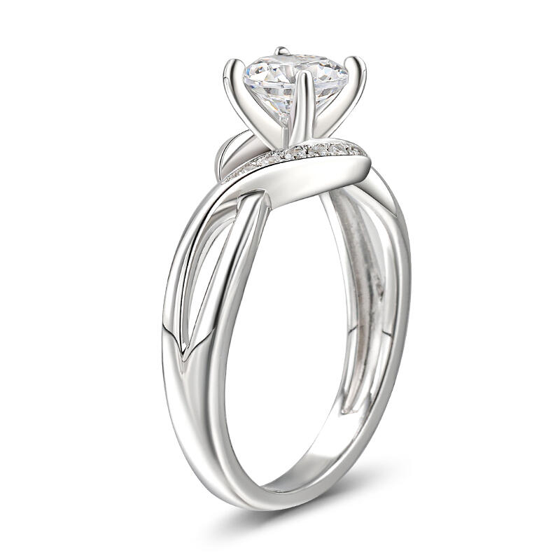 Treat yourself as a holiday gift with this stunning ring. Crafted in sterling silver, the engagement ring showcases a round-cut center stone wrapped in two shimmering ribbons. This eye-catching stone set on the gracefully bypassing polished shank. It will be certain to show a really sparkling and unique look on your finger.