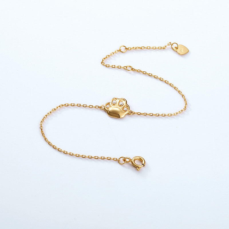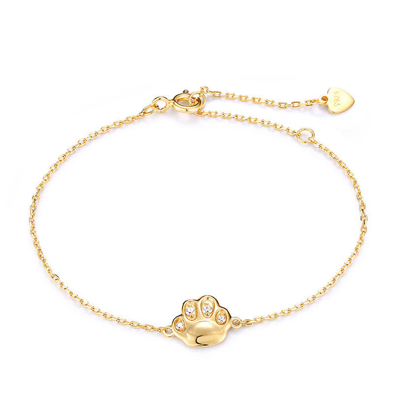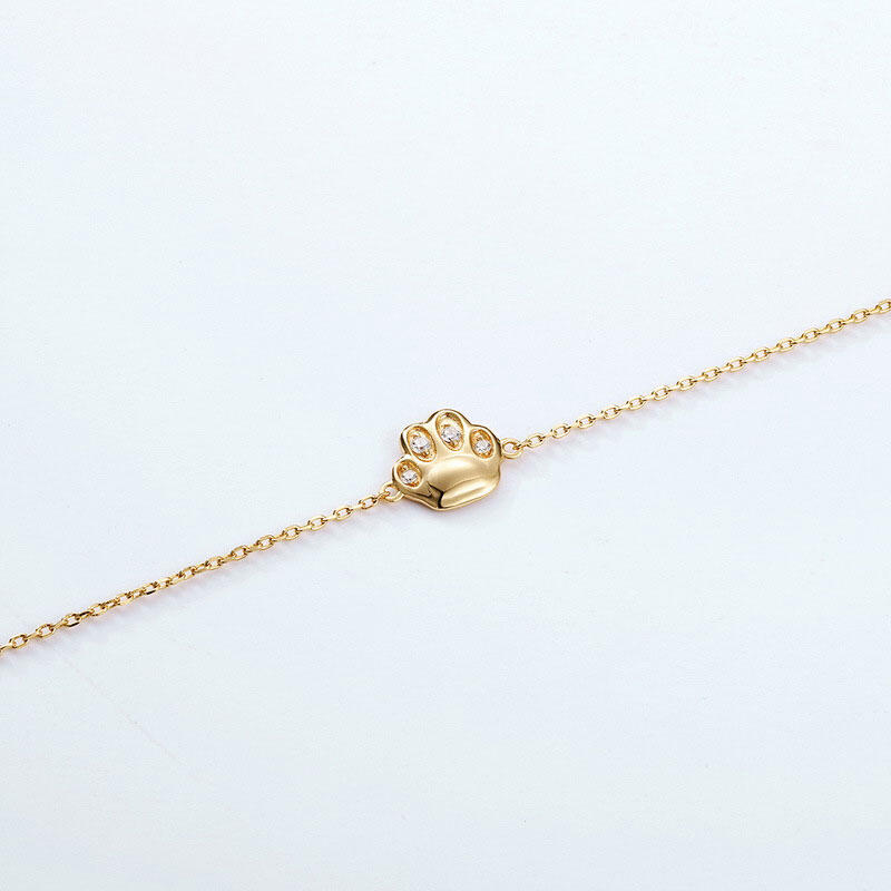 Show your love for cats with this feline bracelet and enjoy a cute paw on your wrist wherever you are. Crafted in sterling silver, It is designed with a small cat paw flanking the center and decroated with white stones.