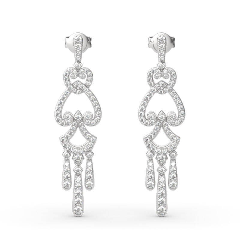 Twinkling stones dangle from chandelier-inspired drop earrings that bring an instant touch of sparkle and glamour to your look. Crafted in sterling silver, each earring features the heart designs and the glistening tassels that offer incomparable beauty and unmatched quality. Whether it's for a special gift or a treat for yourself,these elegant earrings are certain to be appreciated.