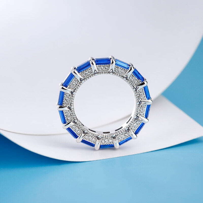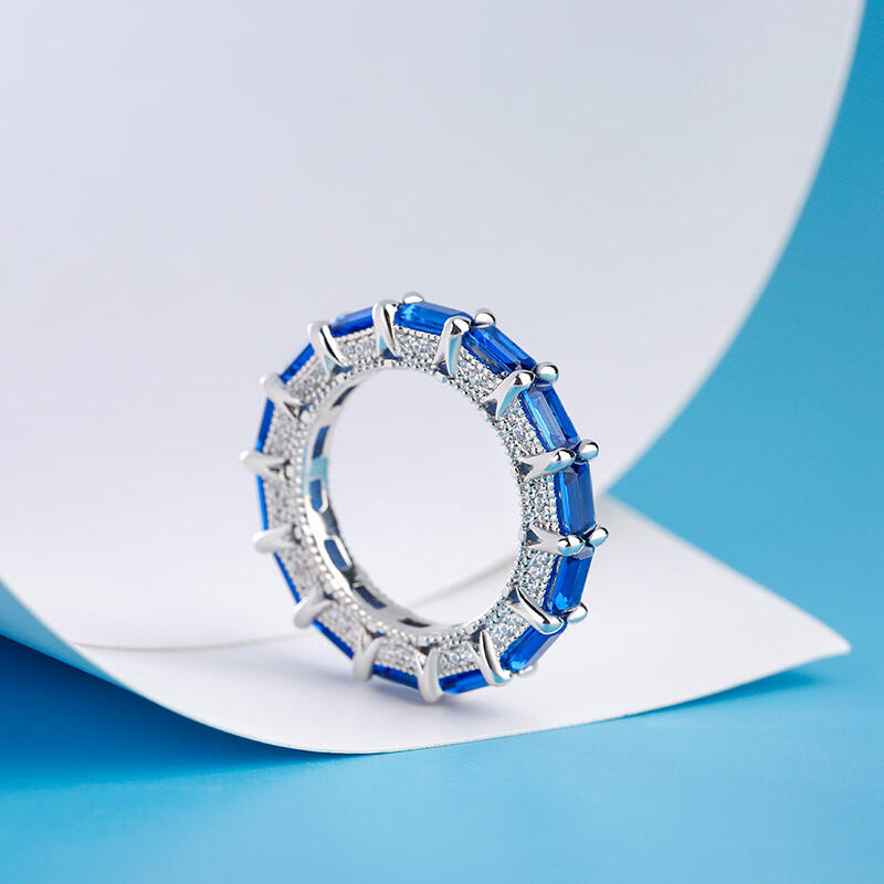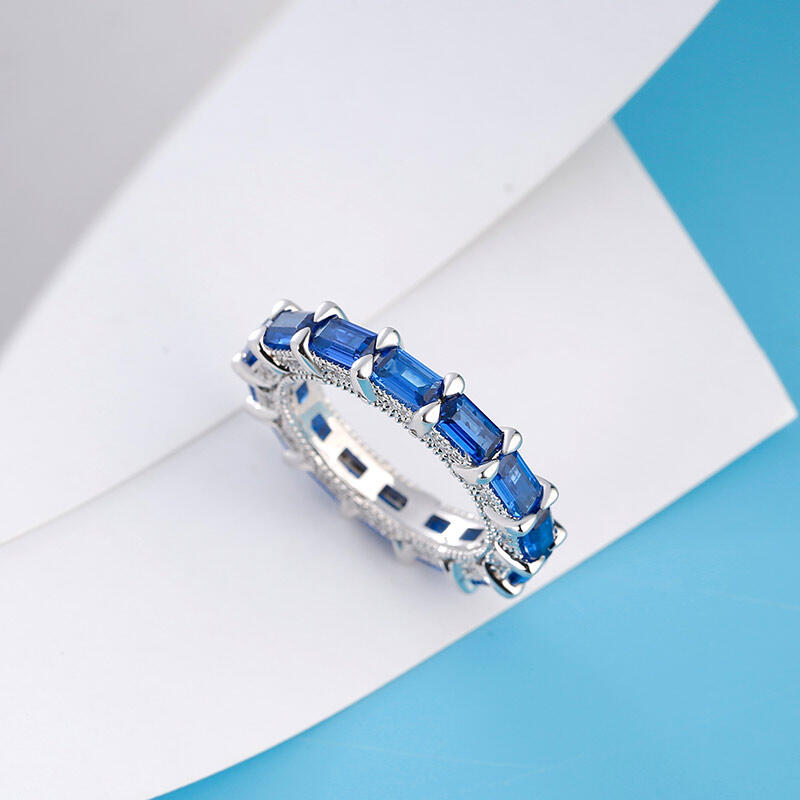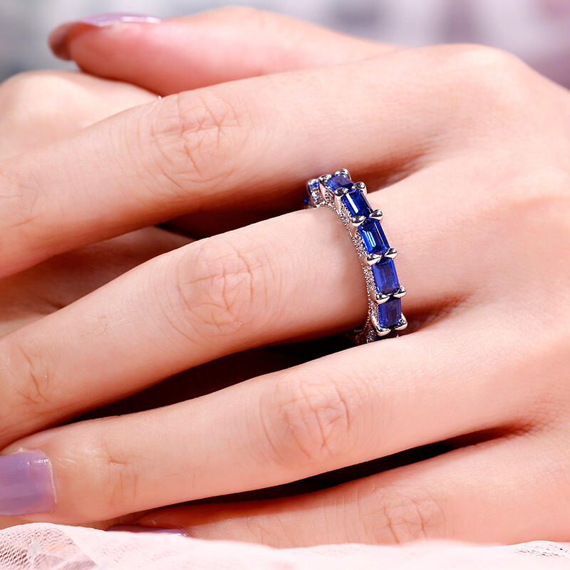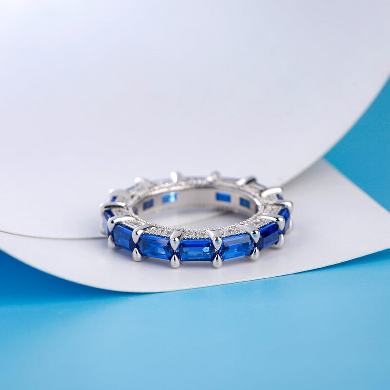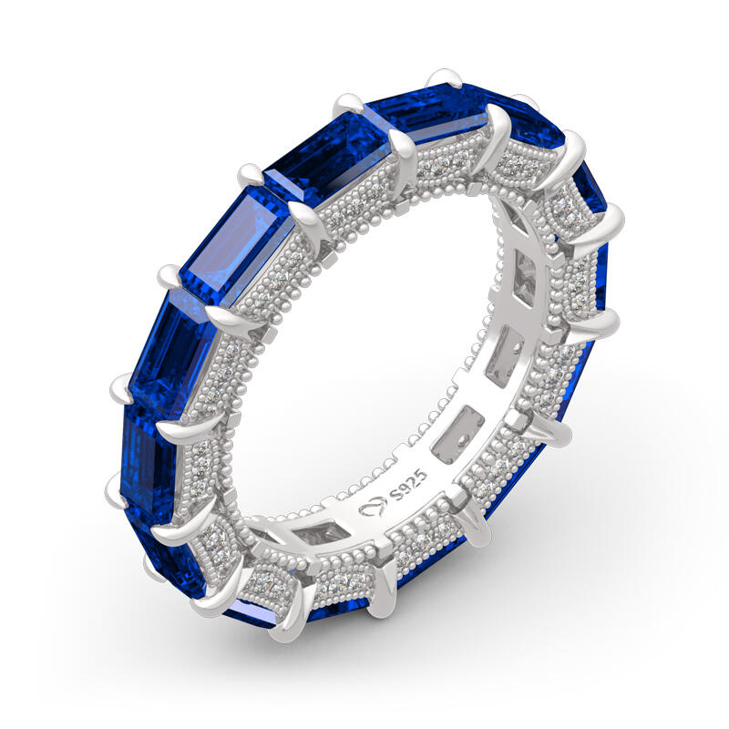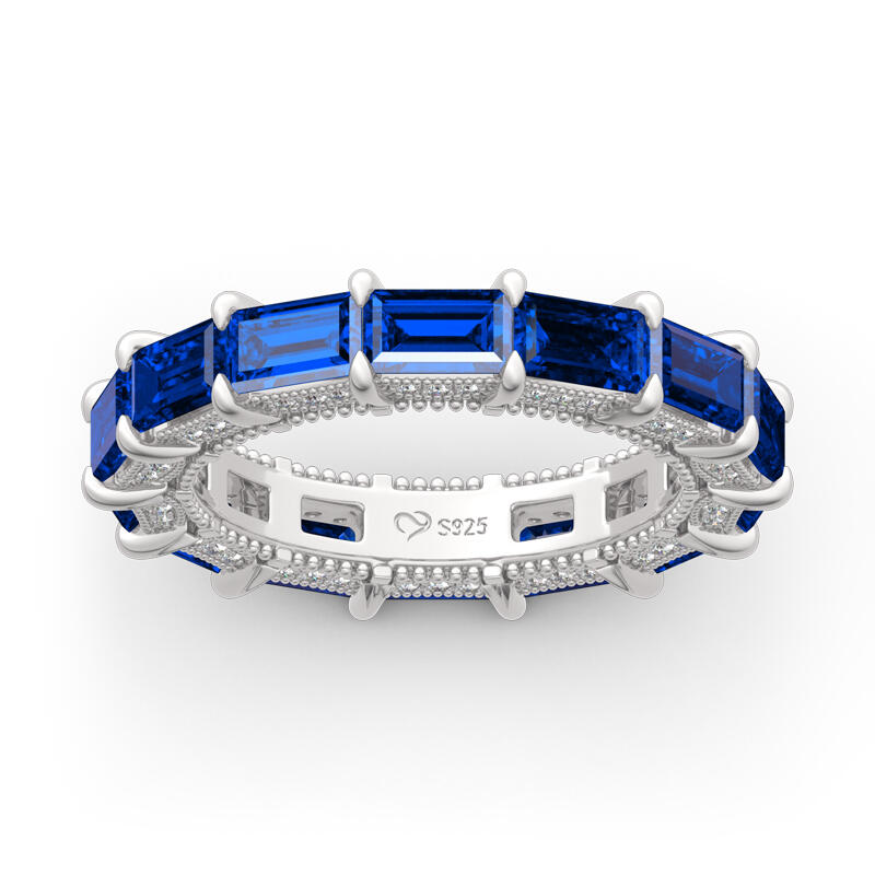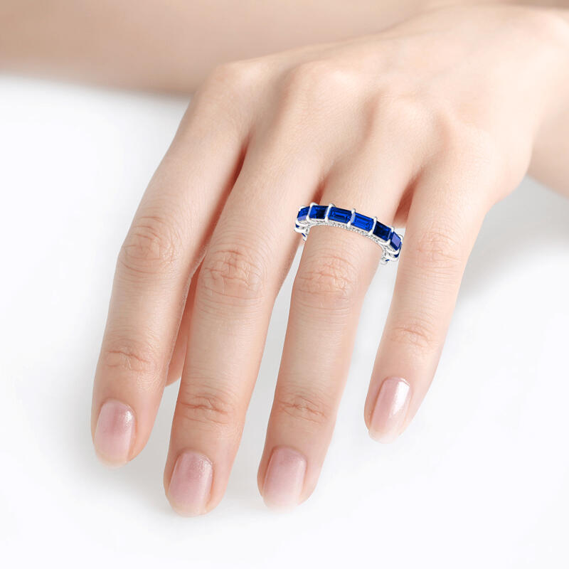 Jeulia Classic Emerald Cut Eternity Sterling Silver Women's Band