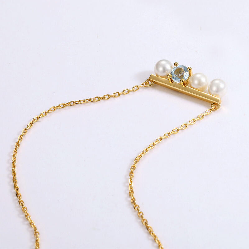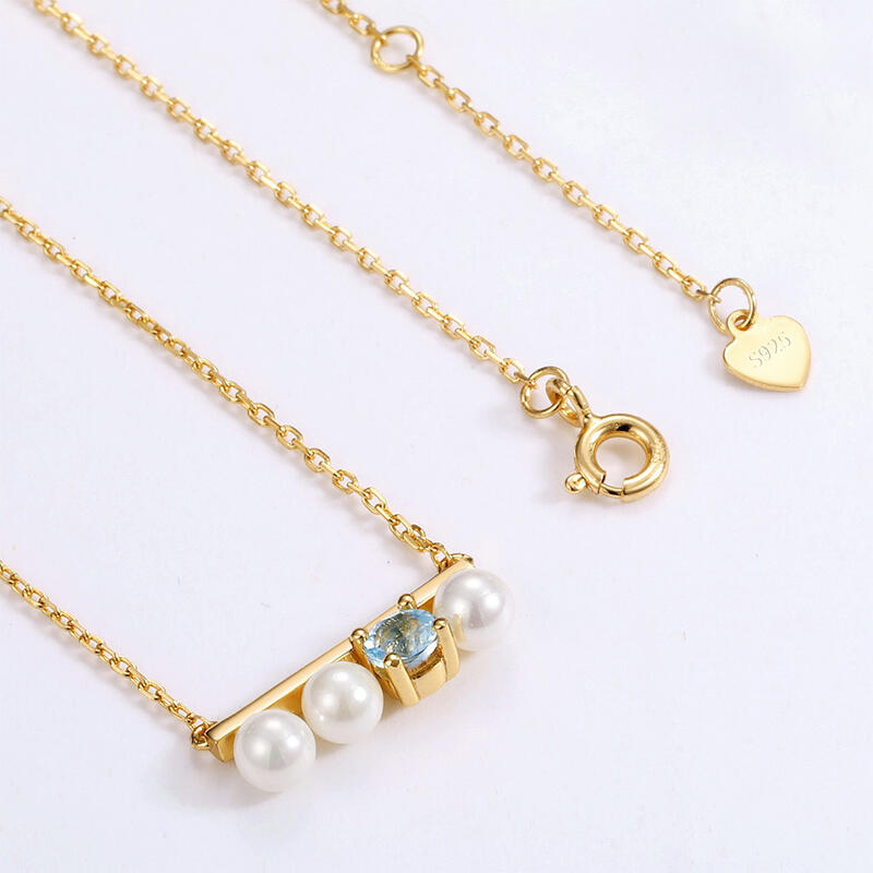 Sparkling blue gem complements a trio of cultured pearls lining in this elegant necklace for her. The lustrous pearls are the center of attention in this picturesque necklace, and the beautiful blue stone adds a touch of shimmer.