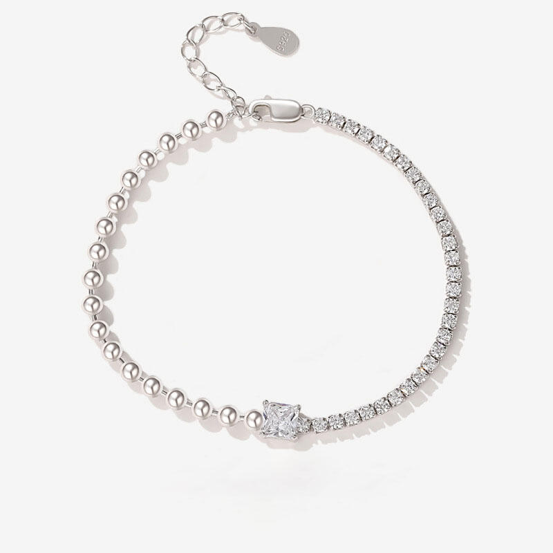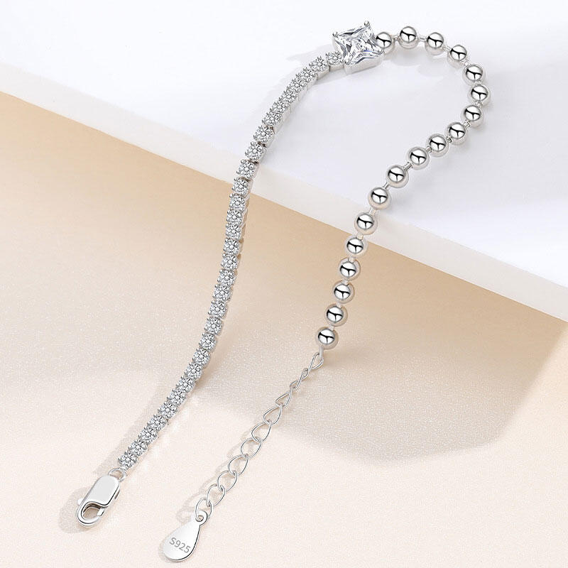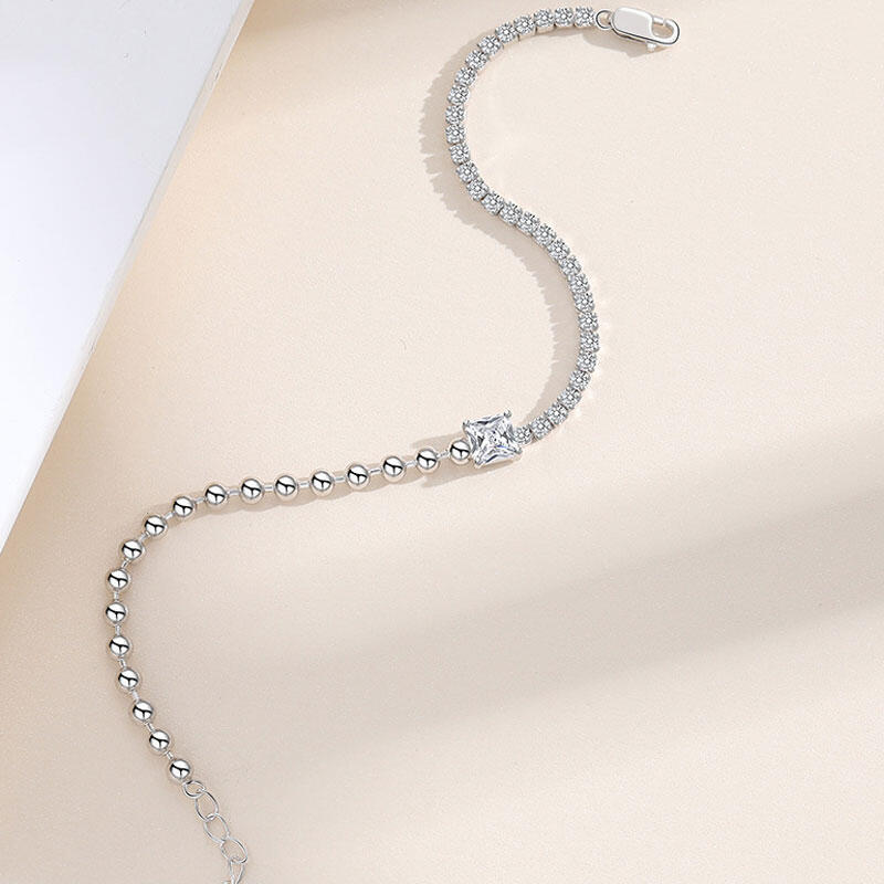 Jeulia Classic Princess Cut Beaded Sterling Silver Bracelet